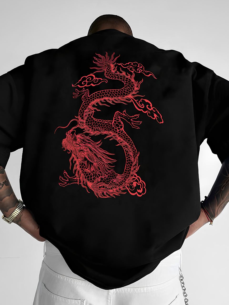 Чоловіча Чорна Футболка Оверсайз – Об’ємна з Принтом Дракон на Спині