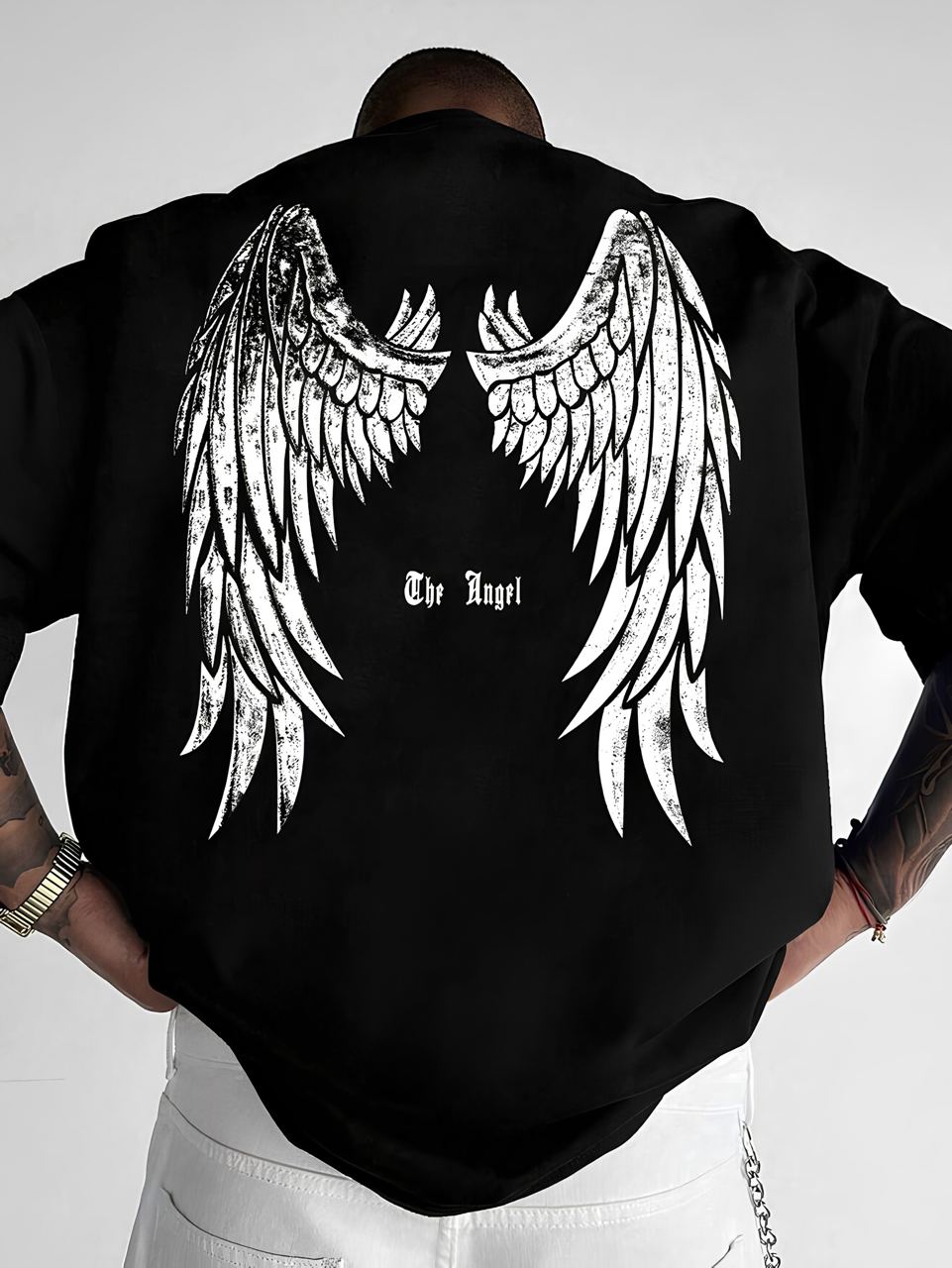 Чоловіча Чорна Футболка Оверсайз – Об’ємна з Принтом Крила на Спині