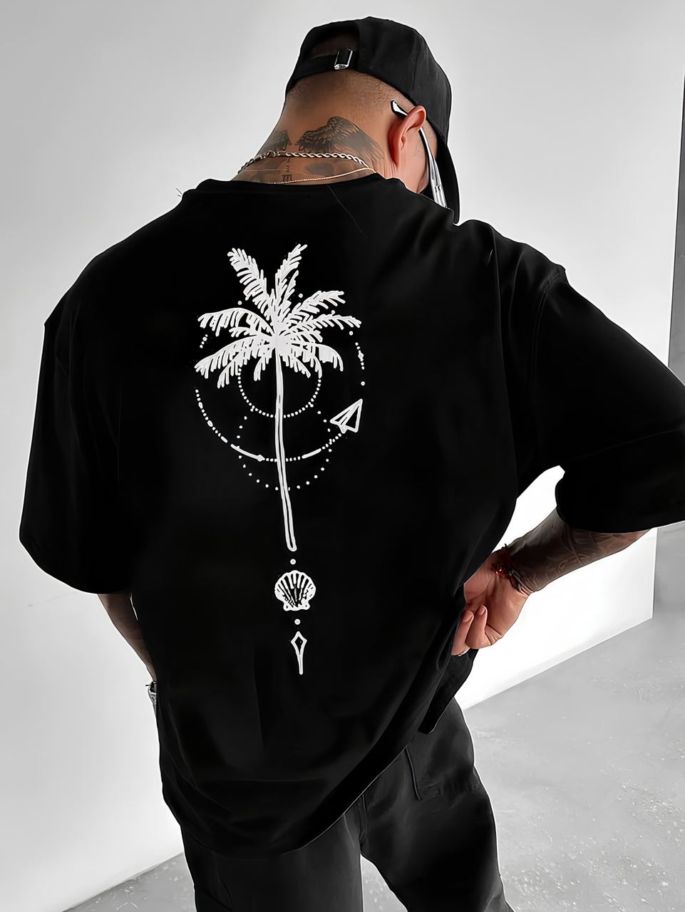 Чоловіча Чорна Футболка Оверсайз – Об’ємна з Принтом Пальма на Спині