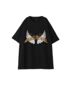 Чоловіча Чорна Футболка Оверсайз з Принтом Сірими Крильми та Написом “Believe”