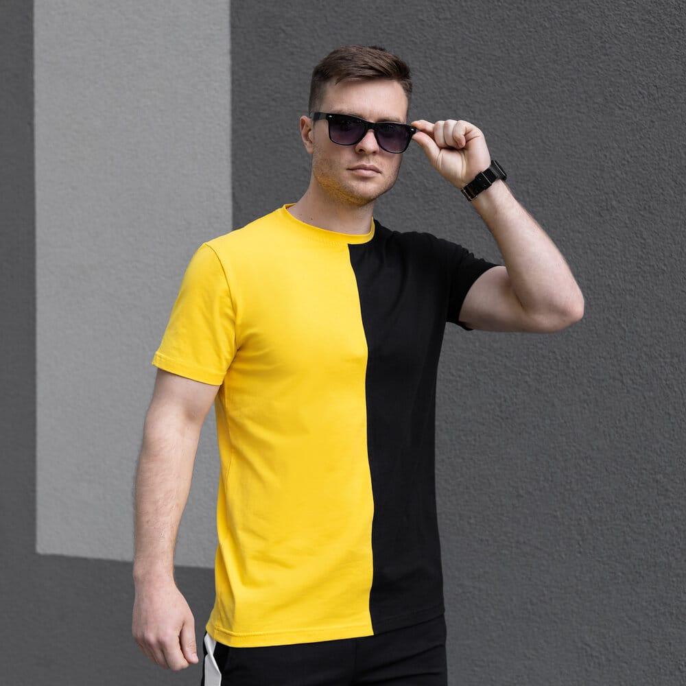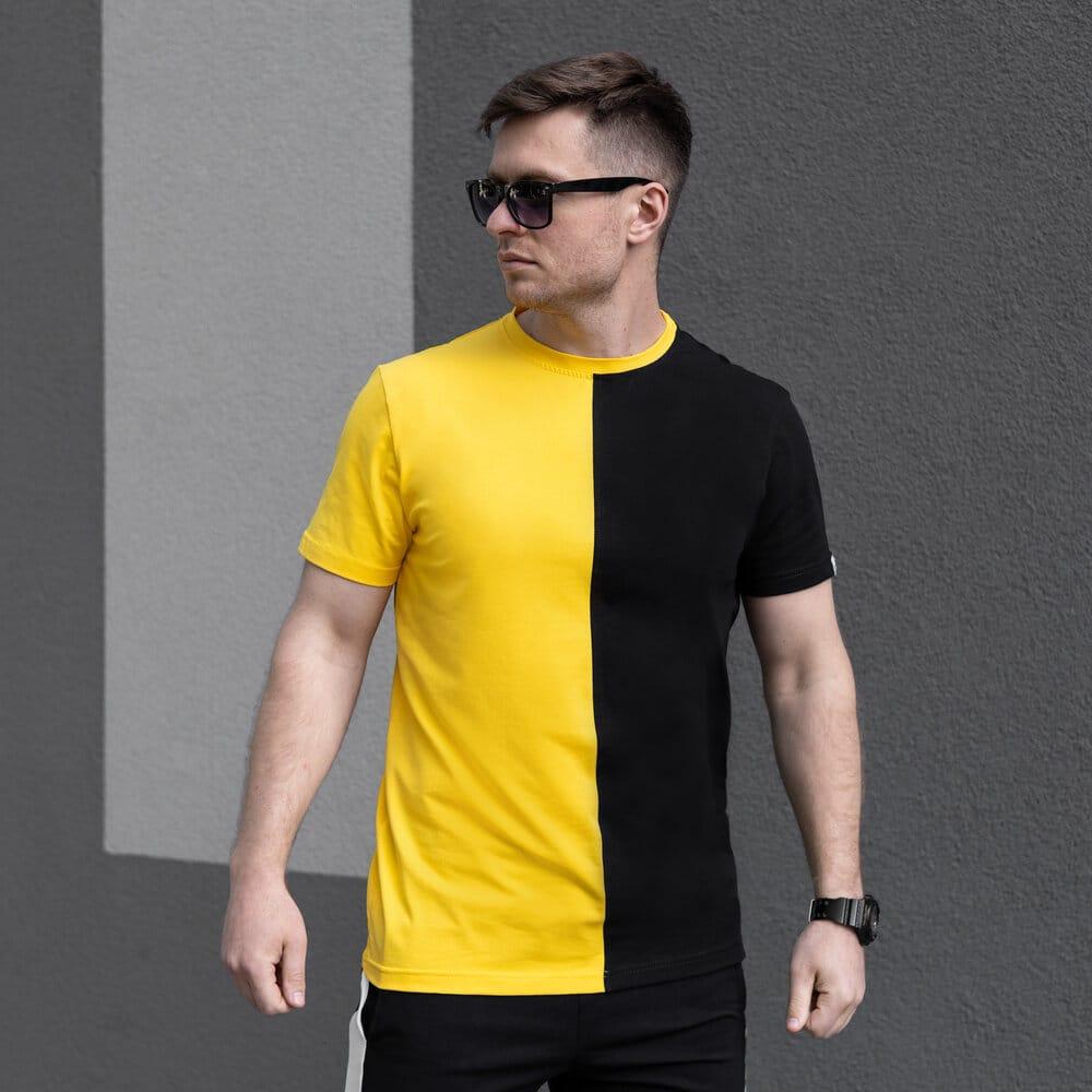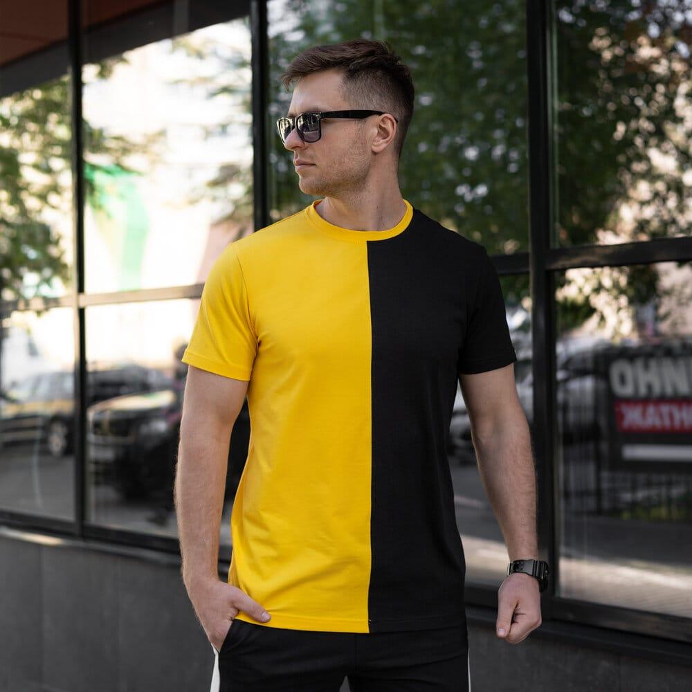 Чоловіча Чорно-Жовта Футболка Двоколірна Прямого Крою