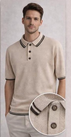 Чоловіча Класична Бежева Футболка Поло Бавовна В’язка з Окантовкою