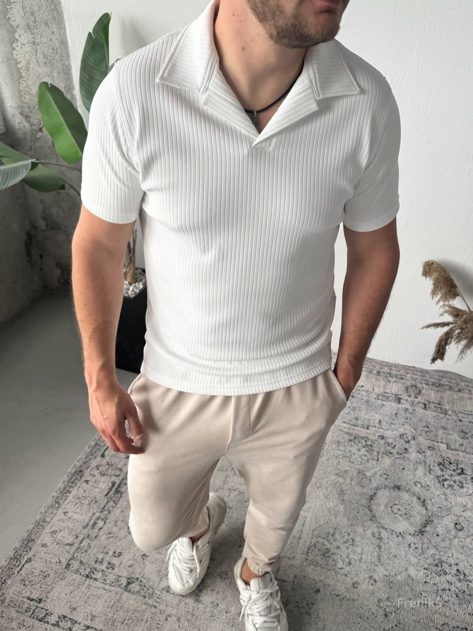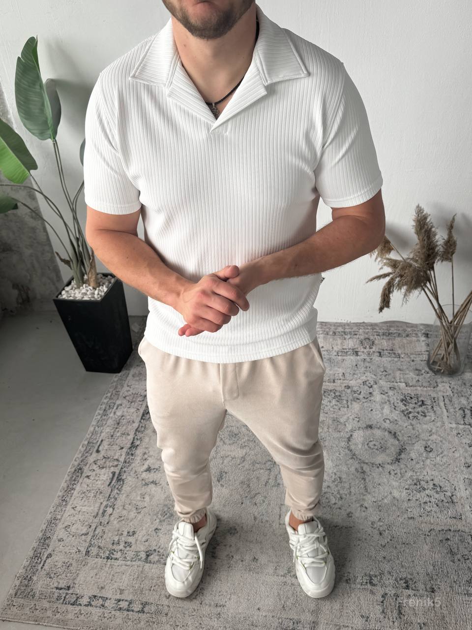 Чоловіча Класична Біла Футболка Поло в Рубчик із Коміром
