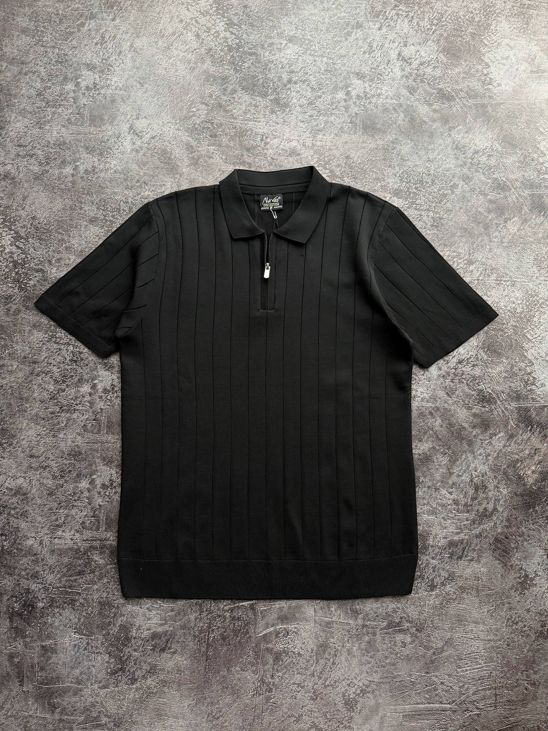 Чоловіча Класична Чорна Футболка Поло у Широкий Рубчик з Коміром на Замку