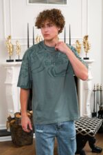 Чоловіча Літня Бавовняна Зелена Футболка Оверсайз – Об’ємна з Принтом Візерунком