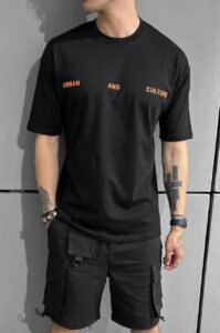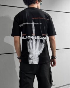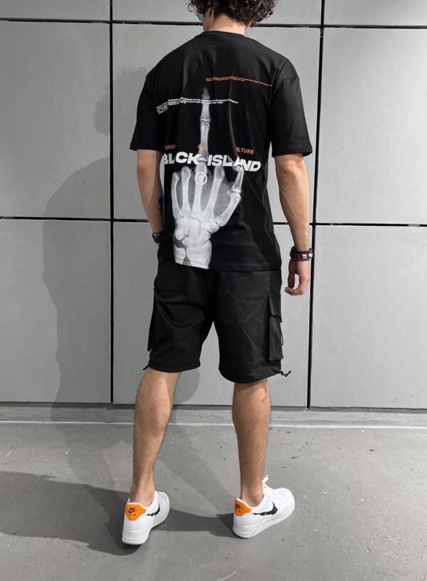 Чоловіча Літня Чорна Футболка Об’ємна Оверсайз – з Принтом Рентгеном Руки Середнього Пальця