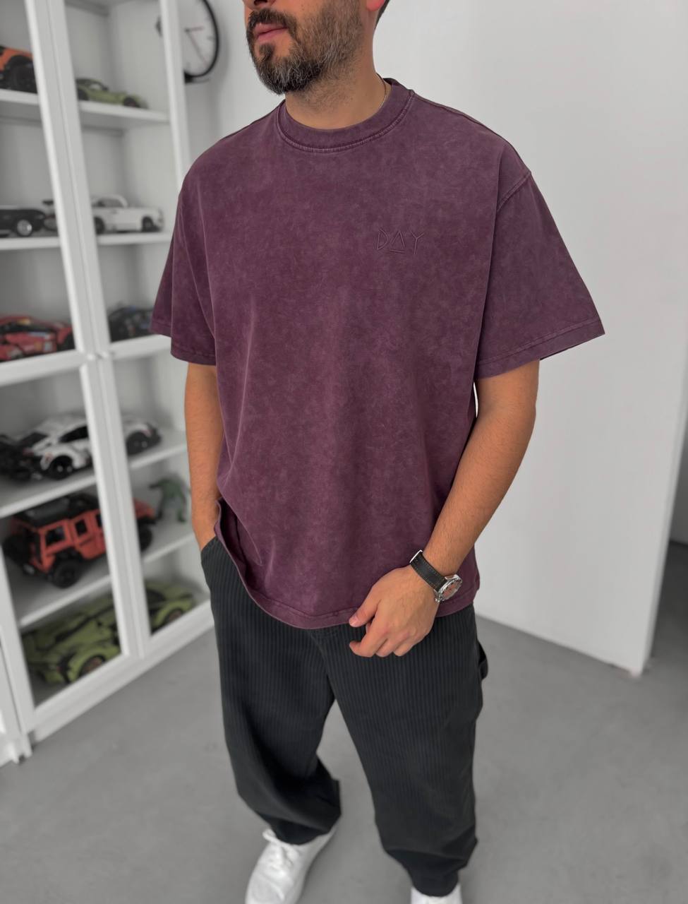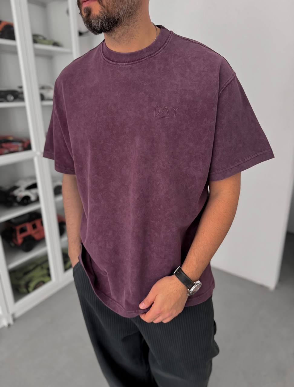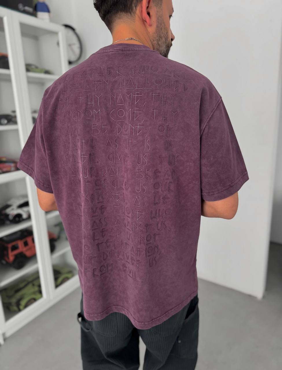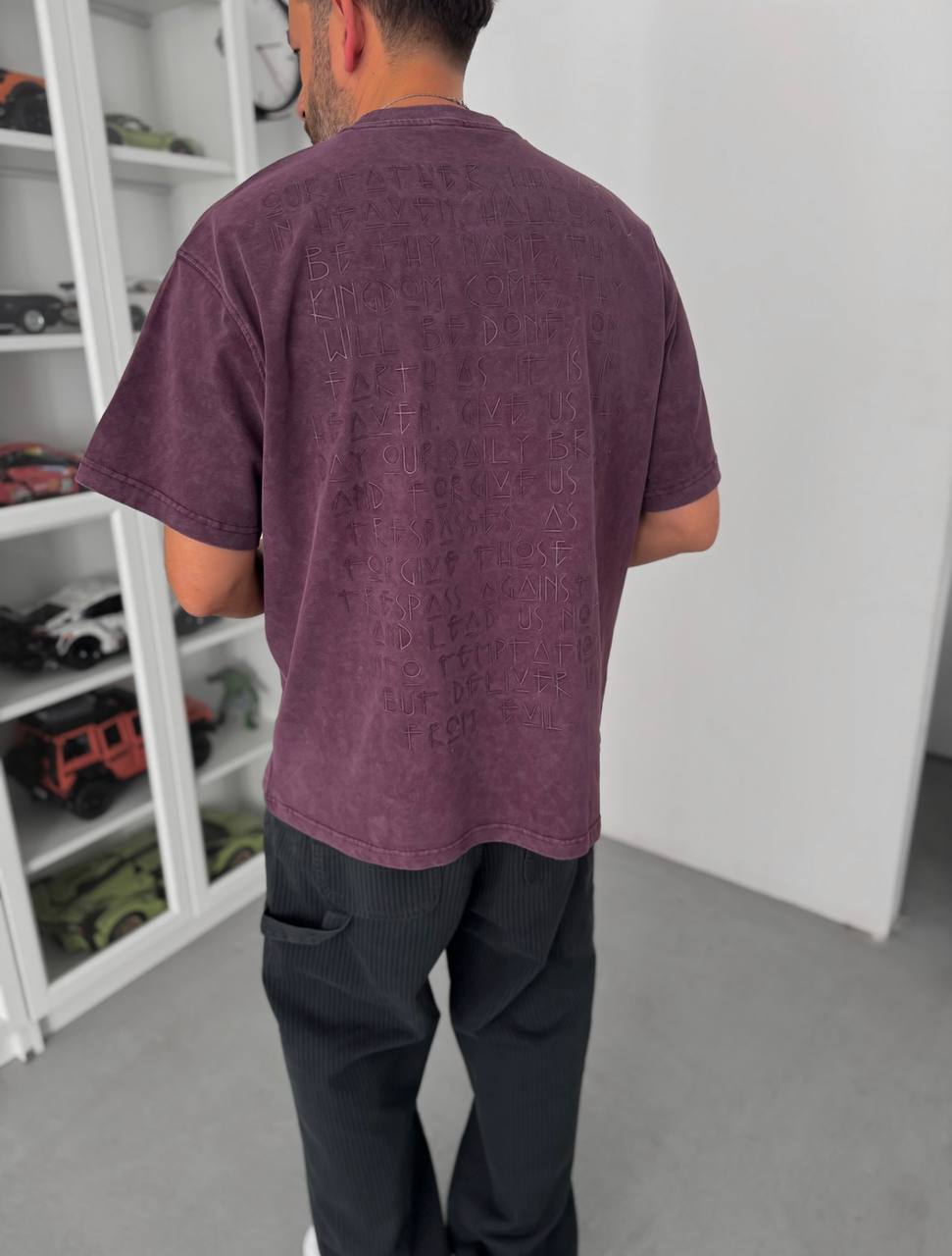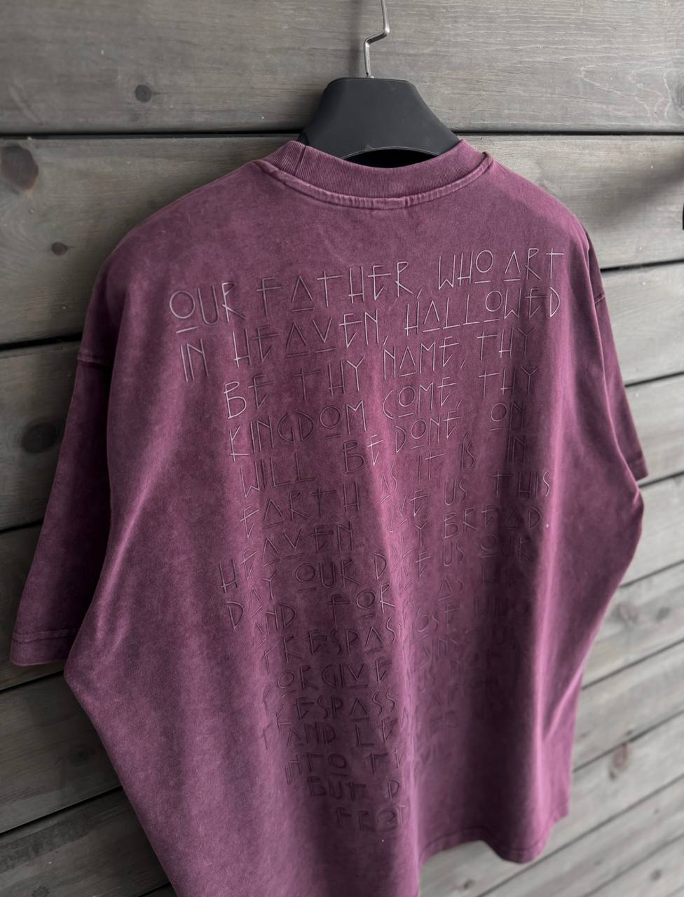 Чоловіча Об’ємна Бордова Варена Футболка Оверсайз з Написом на Спині