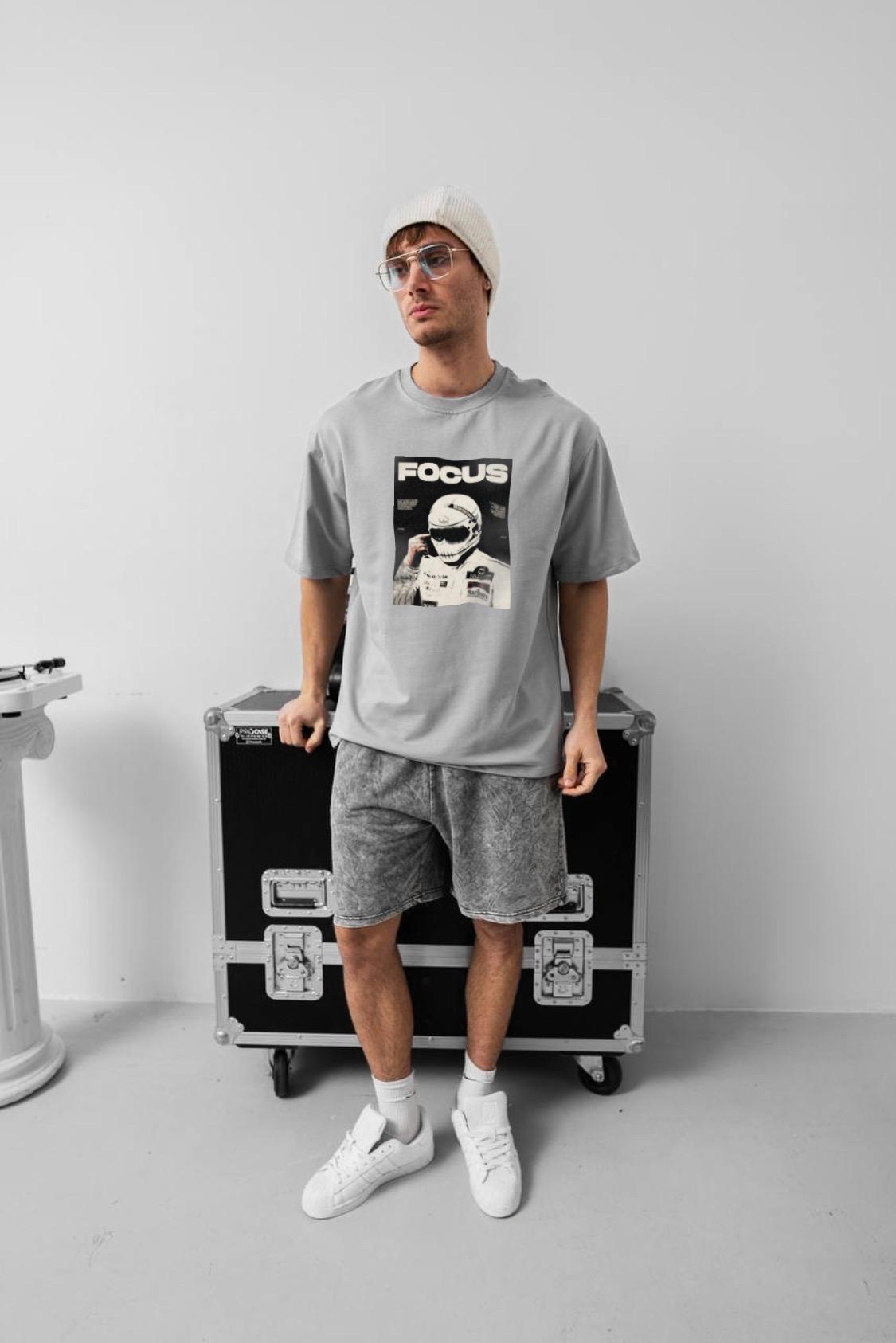 Чоловіча Сіра Футболка Бавовна Оверсайз з Принтом “Focus”