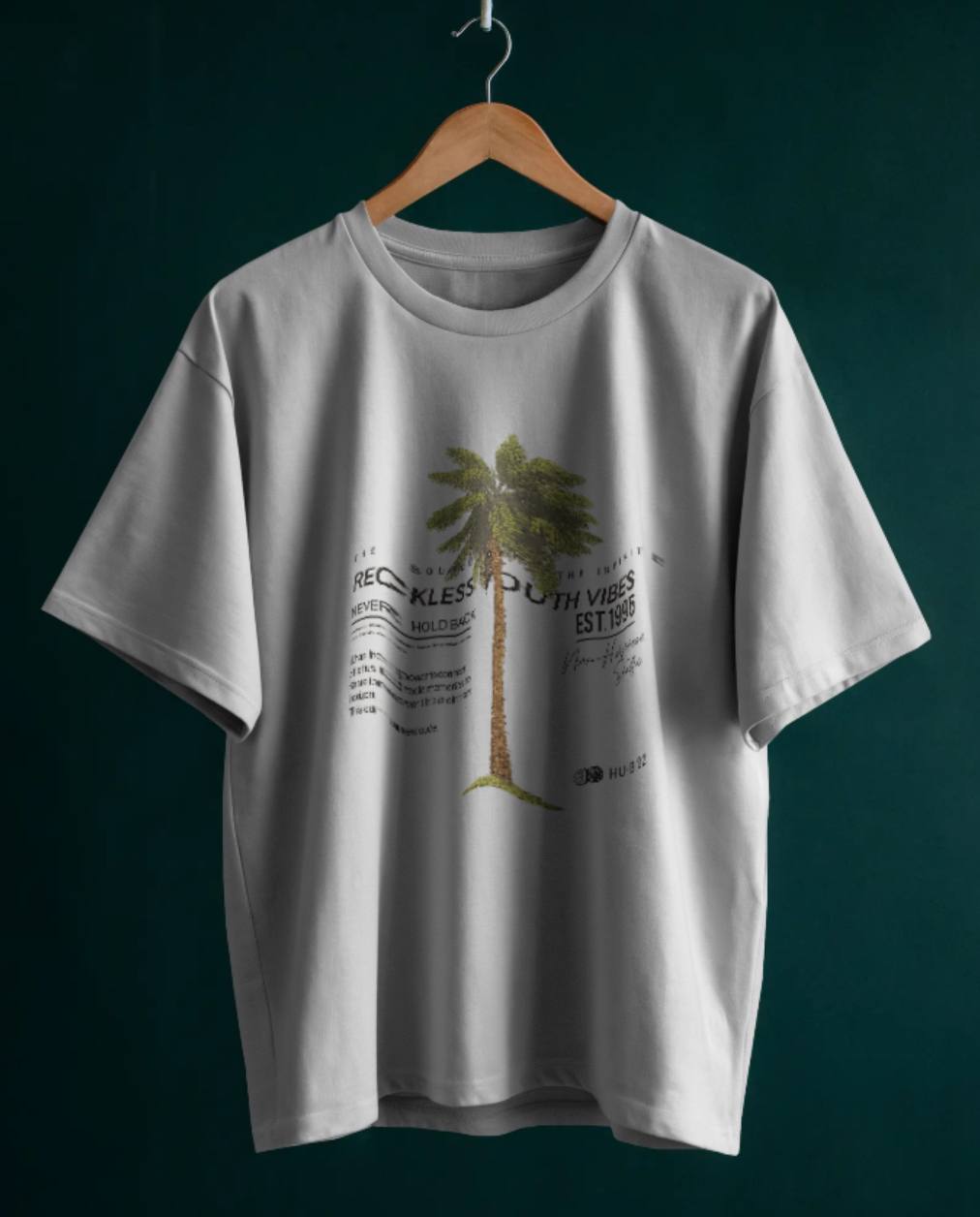 Чоловіча Сіра Футболка Бавовна Вільного Крою з Пальмою