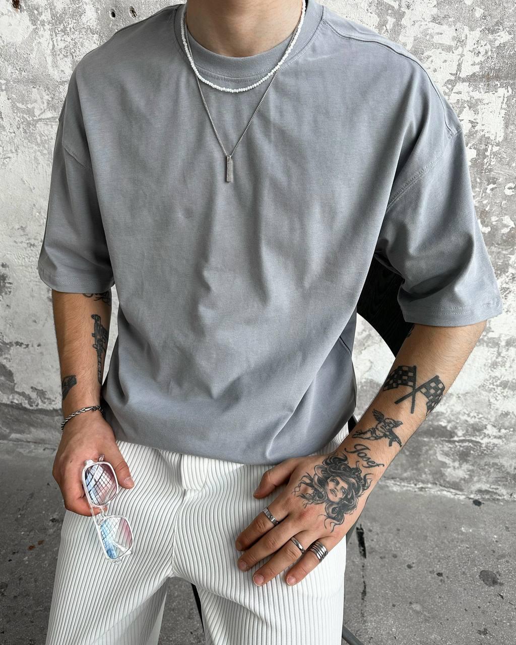 Чоловіча Сіра Футболка Оверсайз – Базова Бавовняна