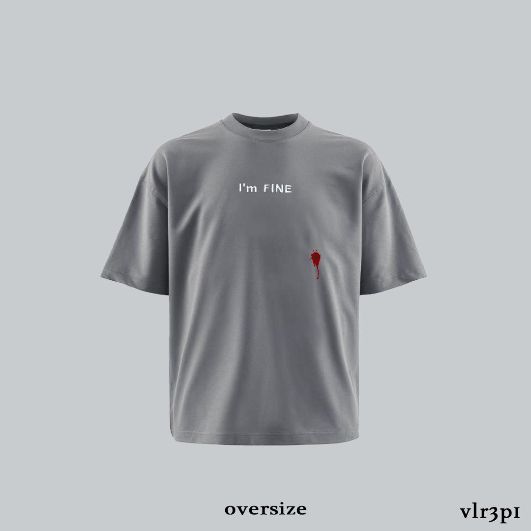 Чоловіча Сіра Футболка Оверсайз Кулір з Написом “I’m Fine”