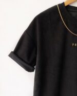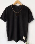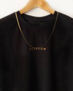 Чоловіча Вельветова Чорна Футболка Оверсайз з Вишитим Написом “Freedom”