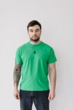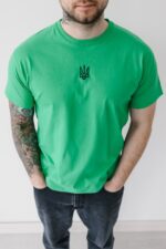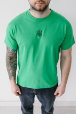 Чоловіча Зелена Футболка Оверсайз – Базова Бавовняна з Вишитим Тризубом