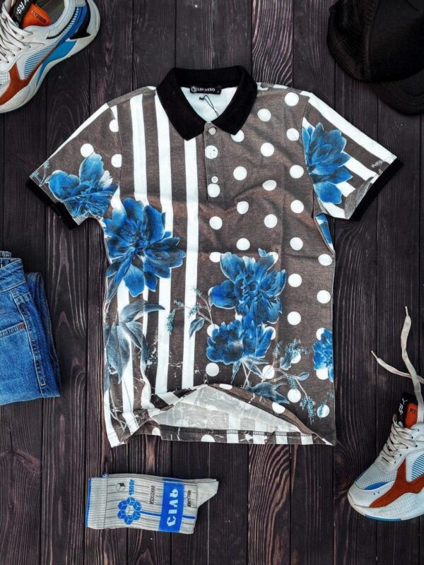 Чоловічі футболки Поло Сіра Блакитна – Вільного Крою Бавовна в Незвичайному Забарвленні