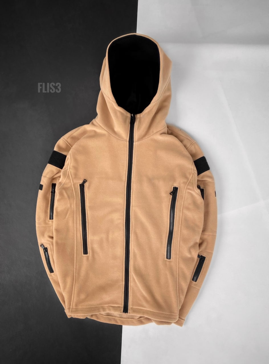 Чоловіче Бежеве Флісове Худі – Тепле на Блискавці з Капюшоном
