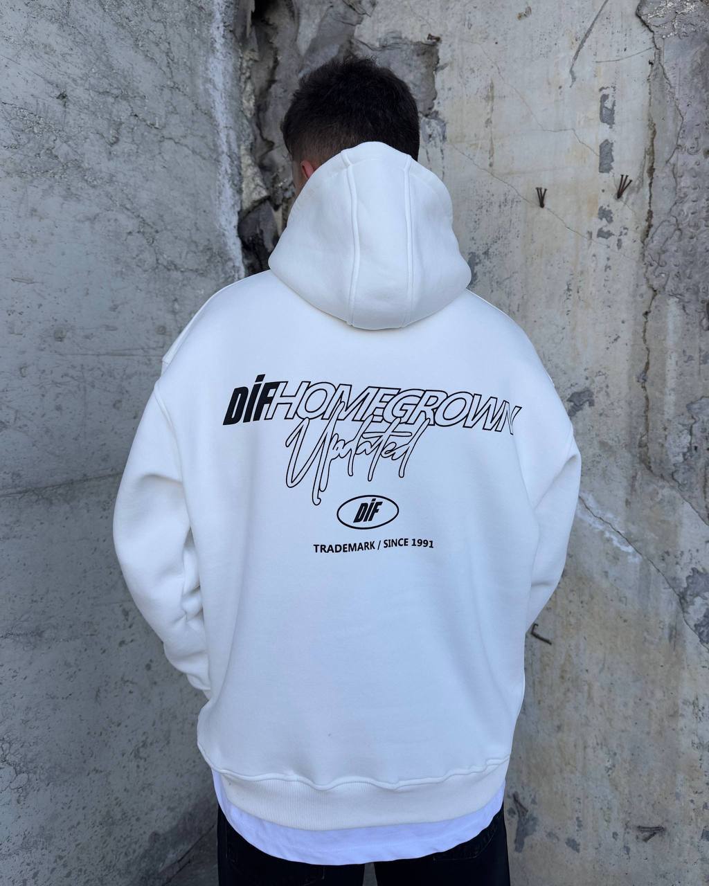 Чоловіче Біле Худі з Принтом на Спині та Рукавах – Тепле на Флісі Оверсайз