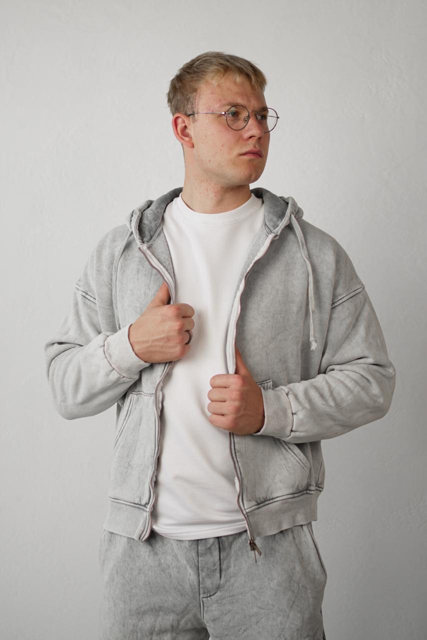 Чоловіче Утеплене Сіре Зіп Худі Оверсайз Варене на Флісі