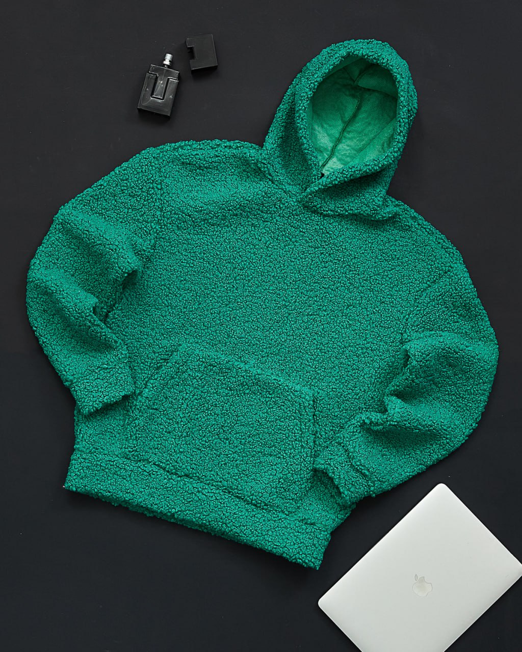 Чоловіче Зелене Плюшеве Худі Тедді Оверсайз – М’яке Кенгуру з Капюшоном
