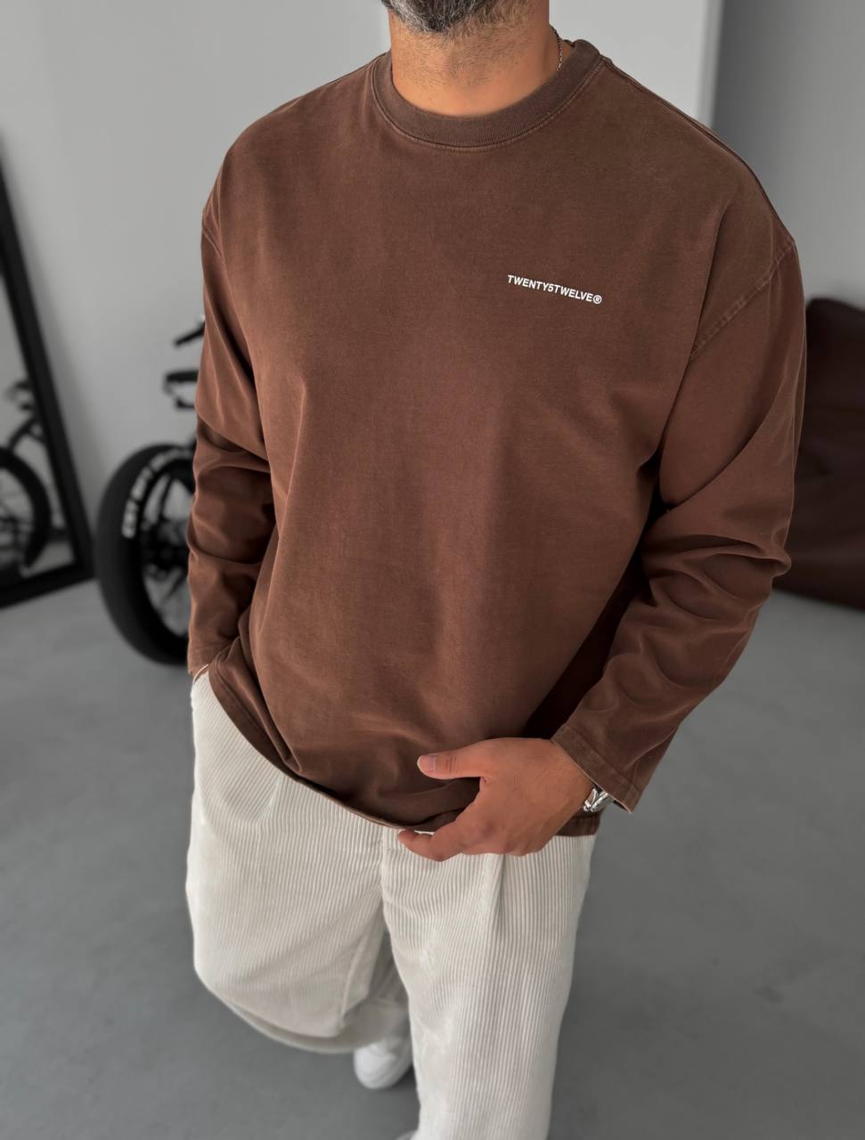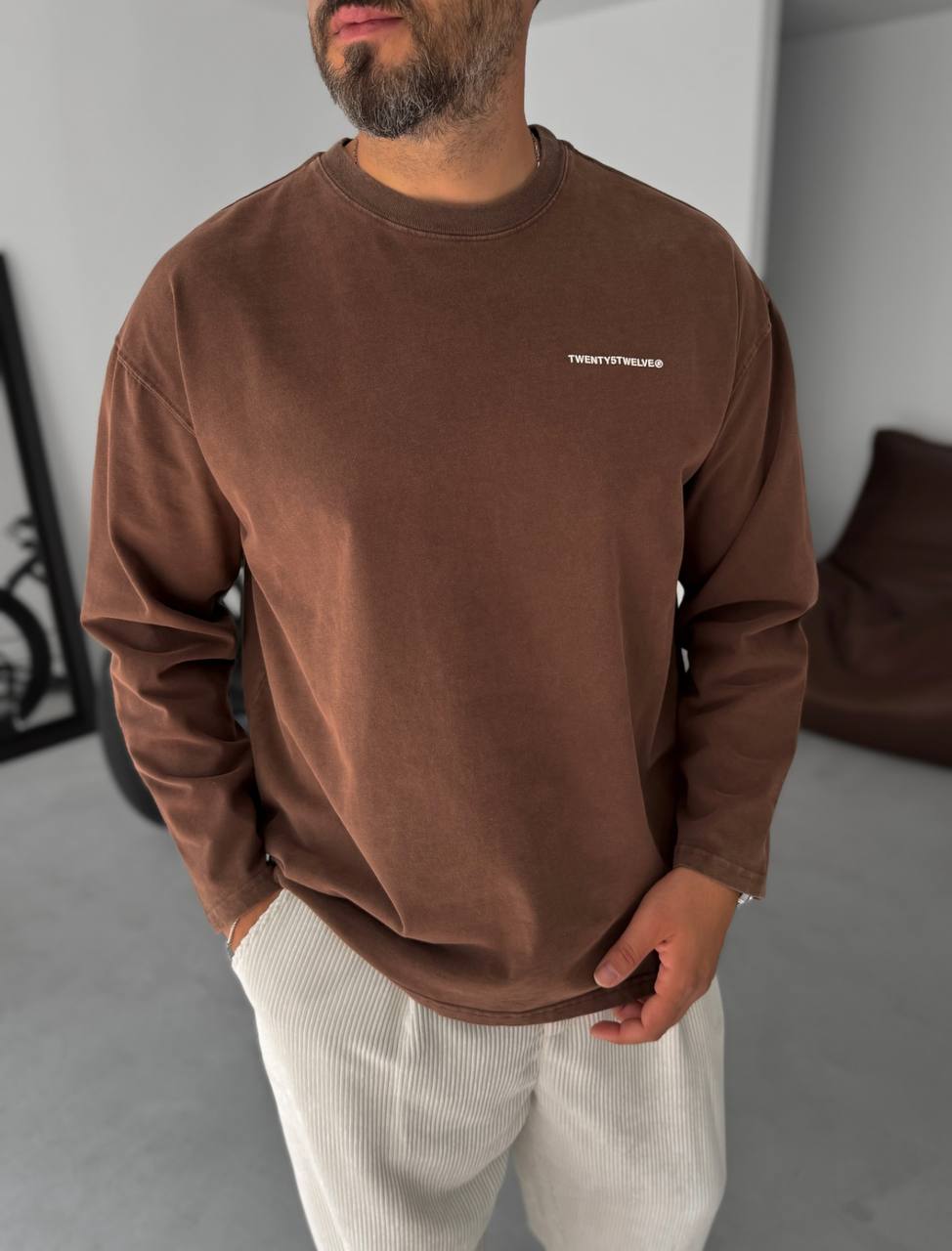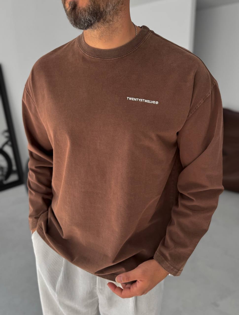 Чоловічий Бавовняний Варений Коричневий Лонгслів Оверсайз