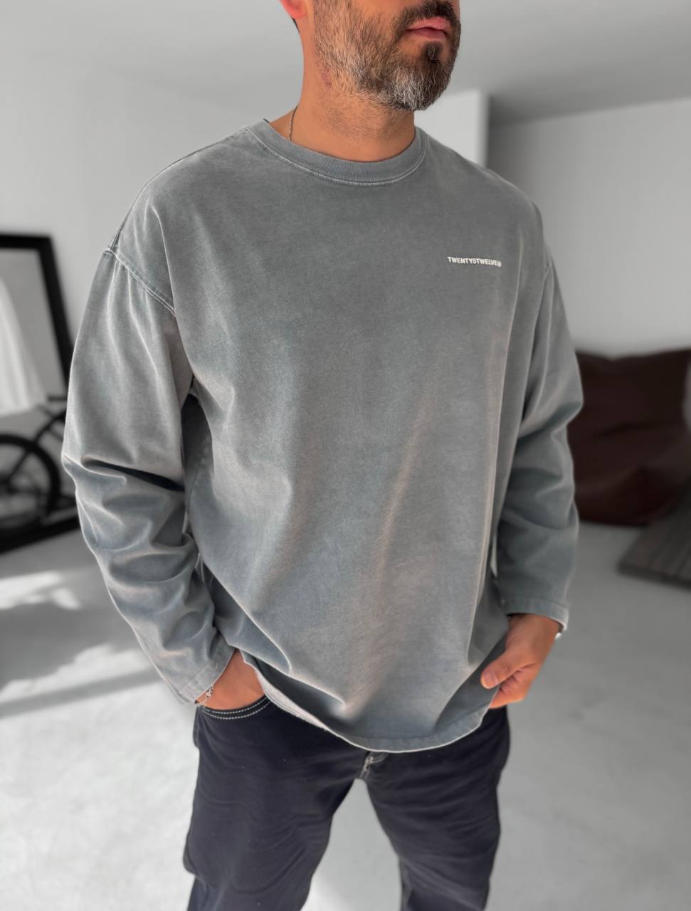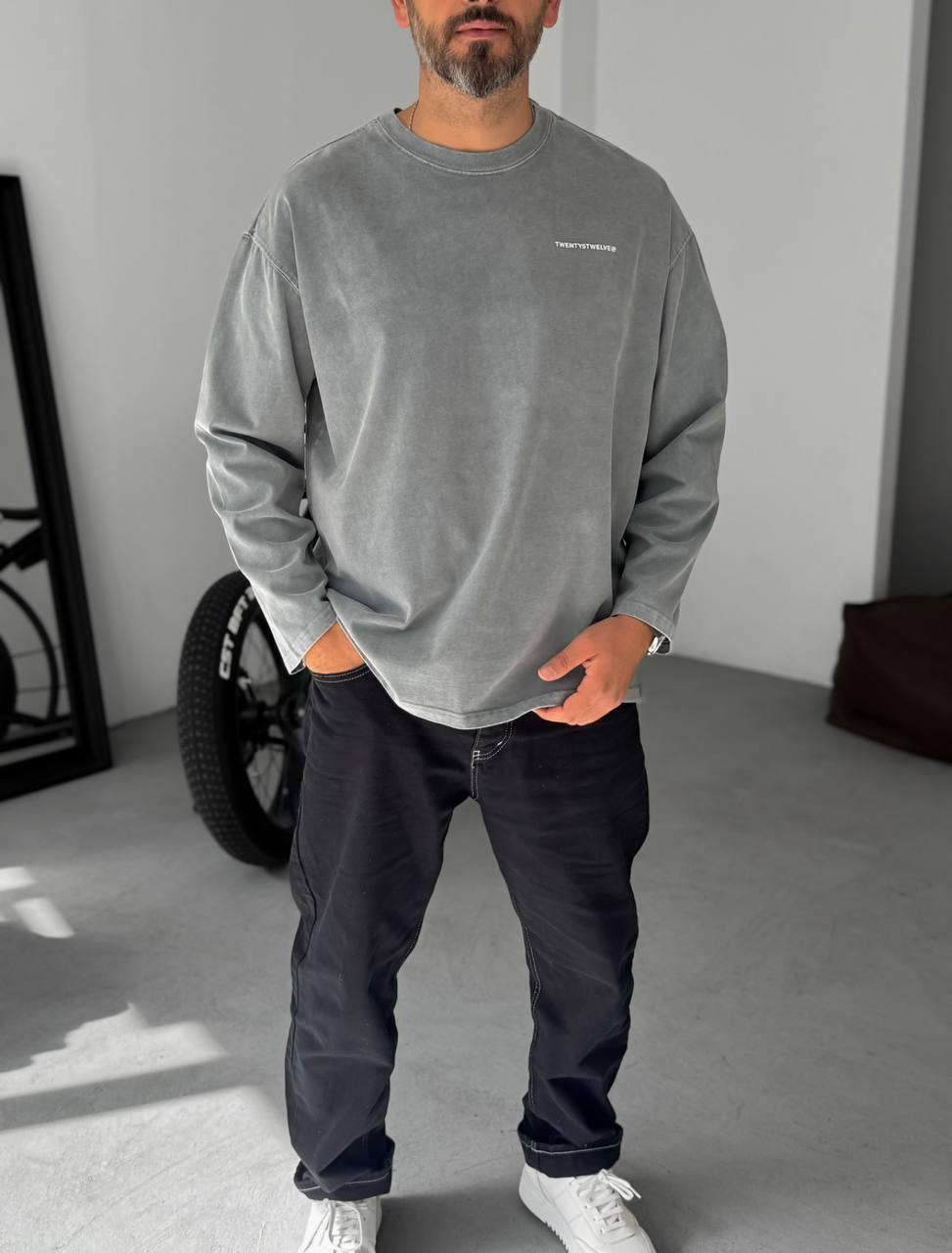 Чоловічий Бавовняний Варений Сірий Лонгслів Оверсайз
