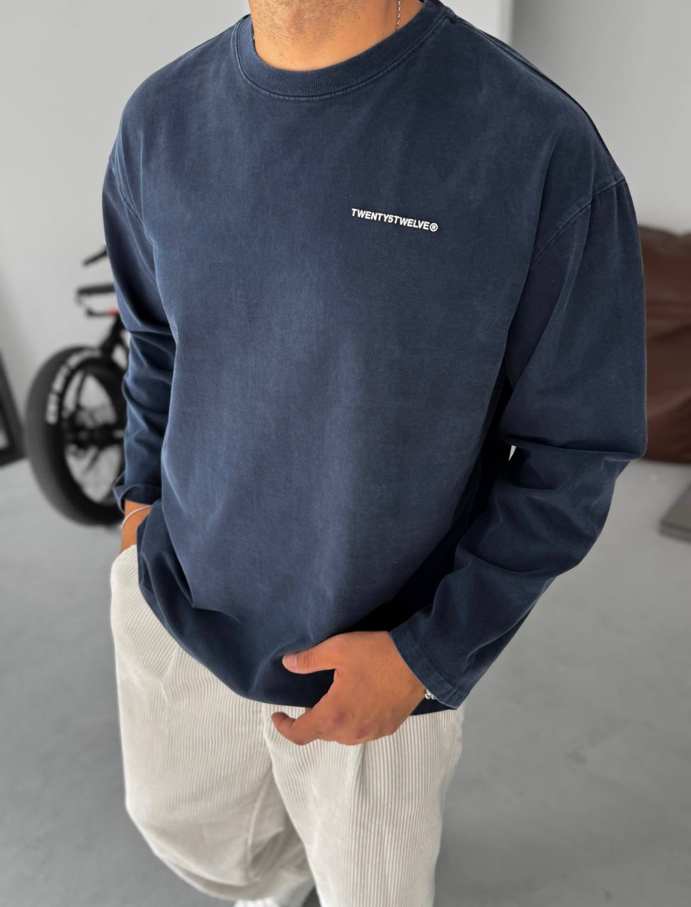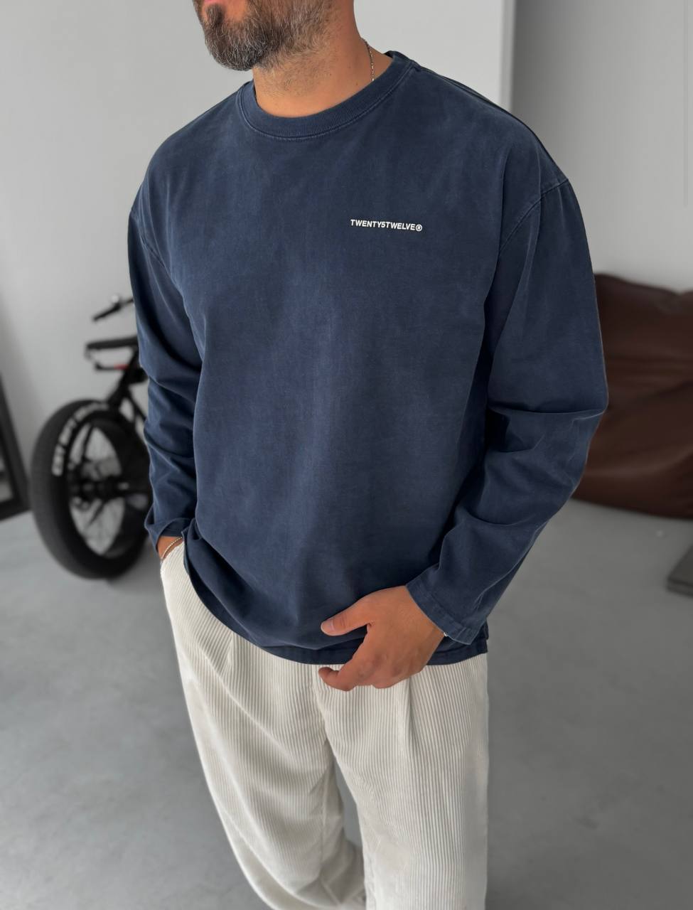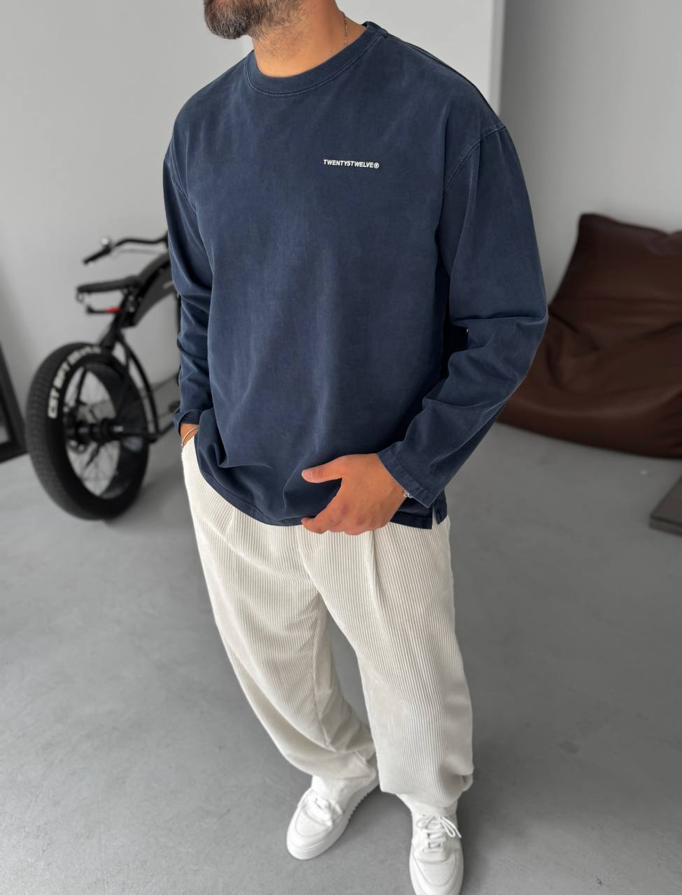 Чоловічий Бавовняний Варений Темно-Синій Лонгслів Оверсайз