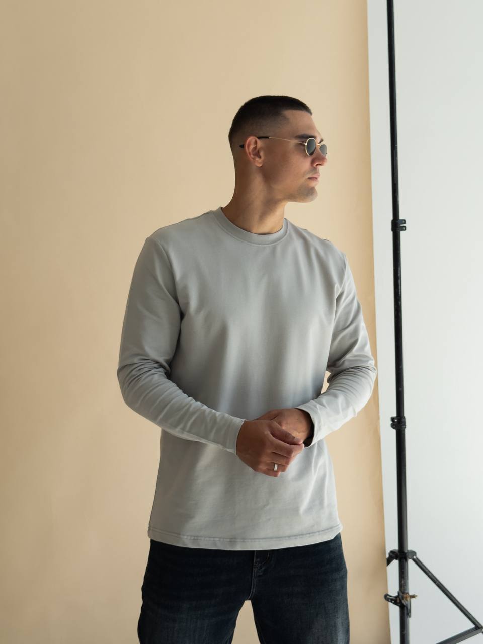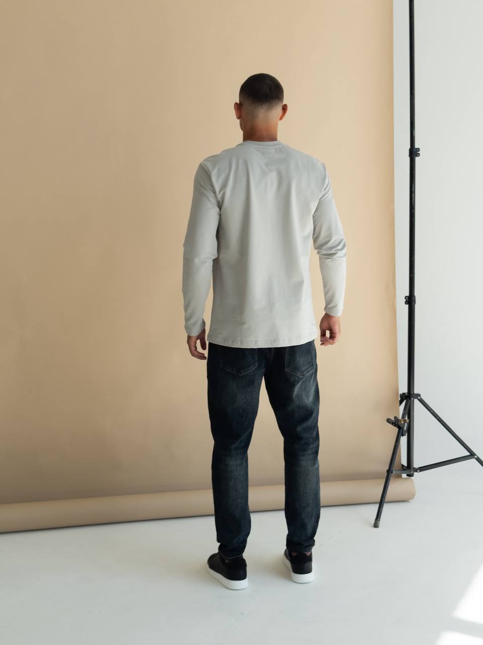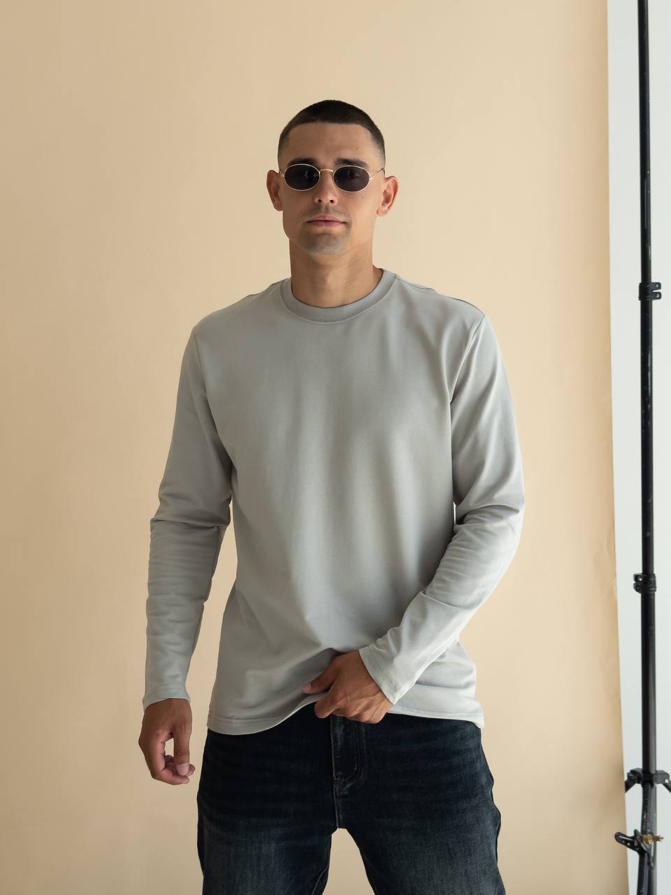 Чоловічий Базовий Сірий Лонгслів Вільного Крою з Круглим Вирізом