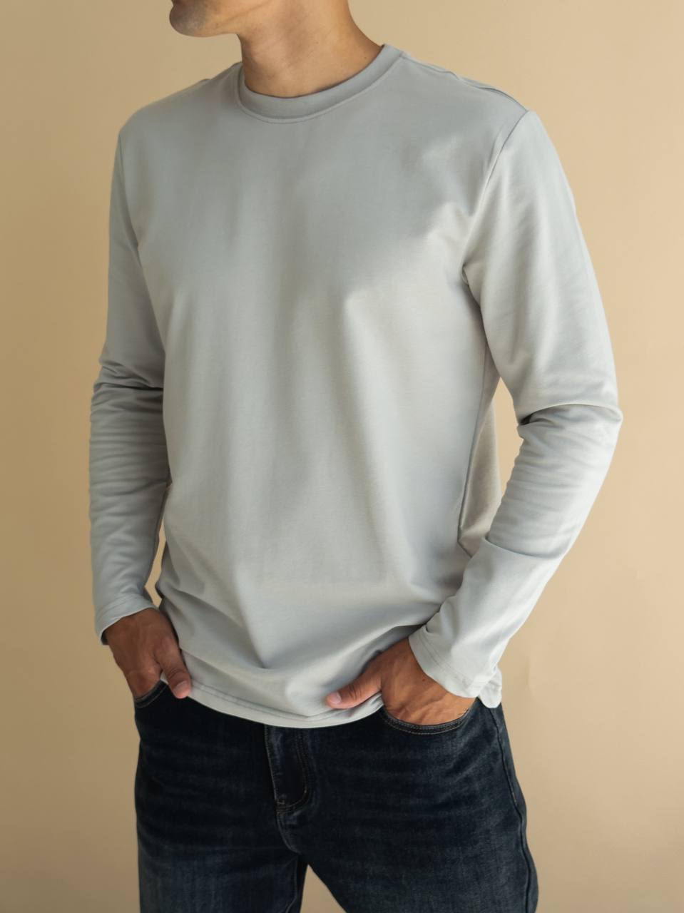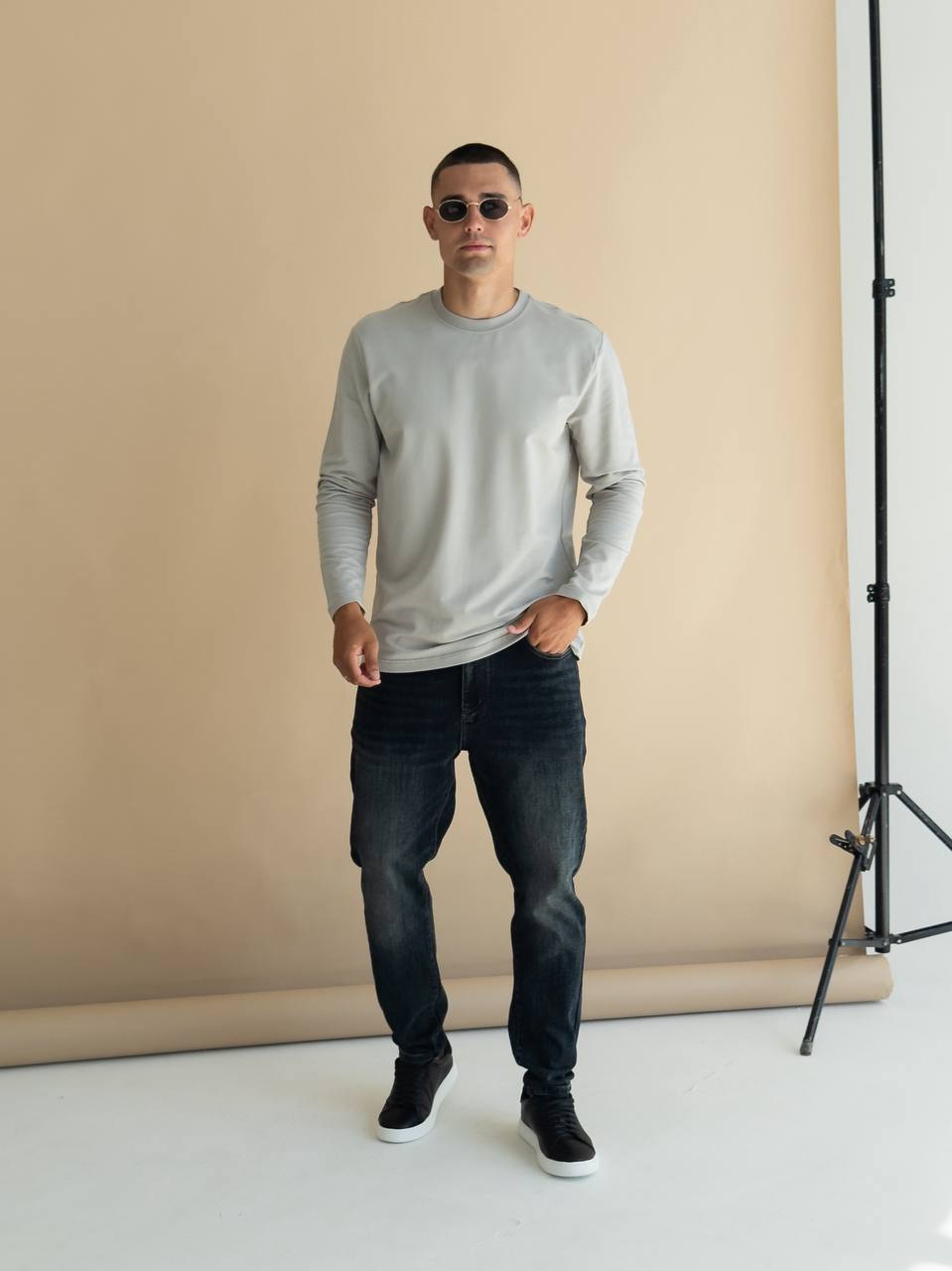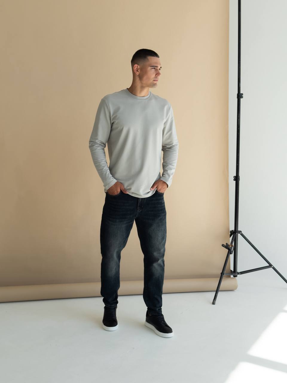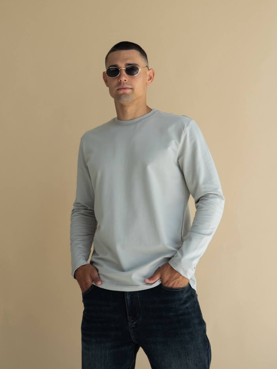 Чоловічий Базовий Сірий Лонгслів Вільного Крою з Круглим Вирізом