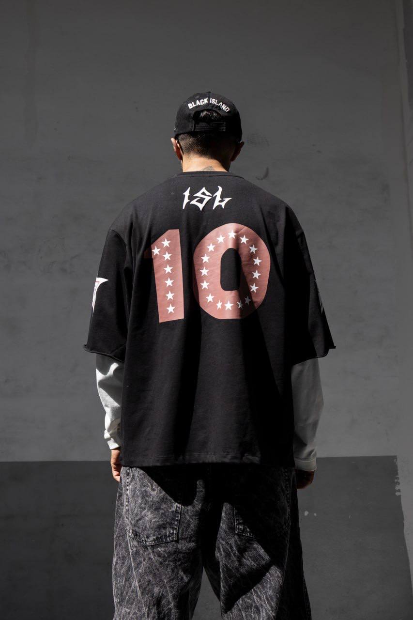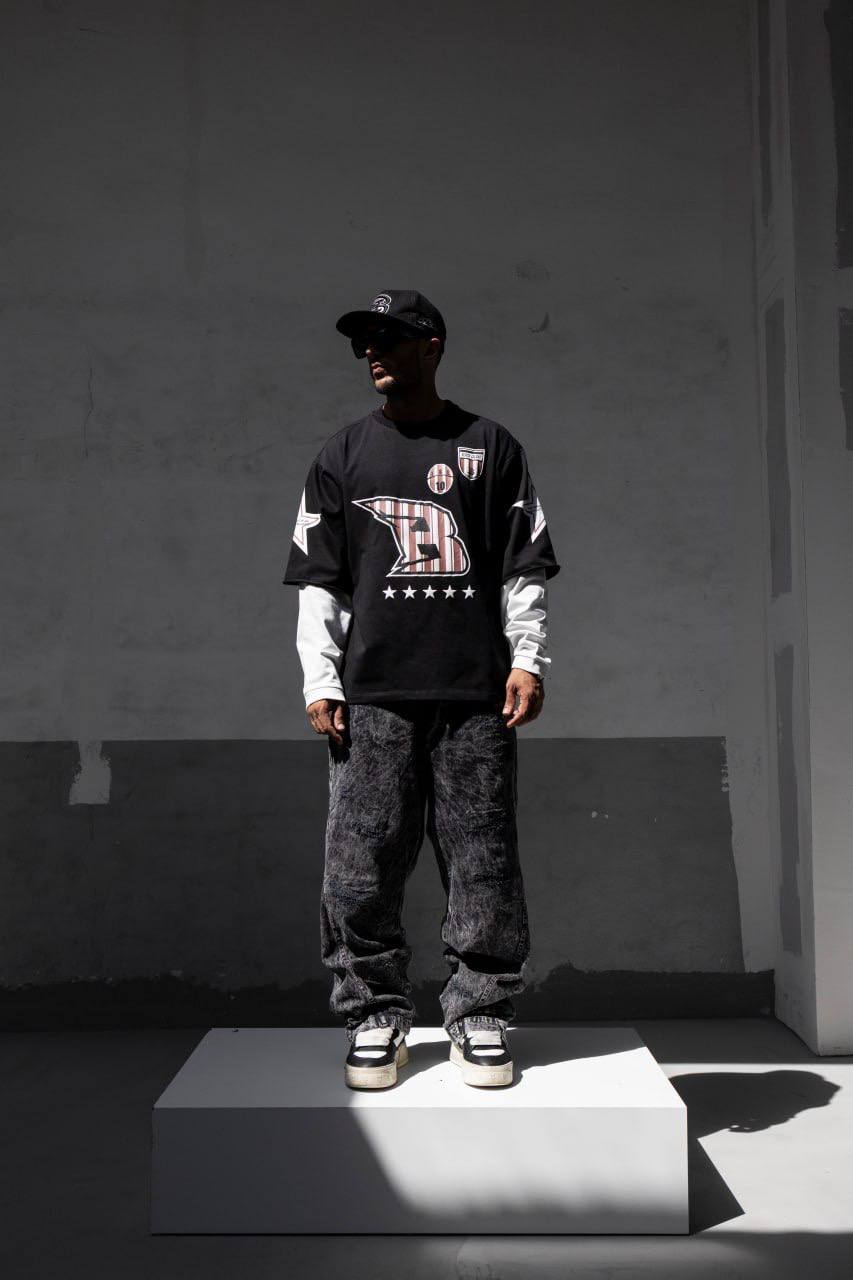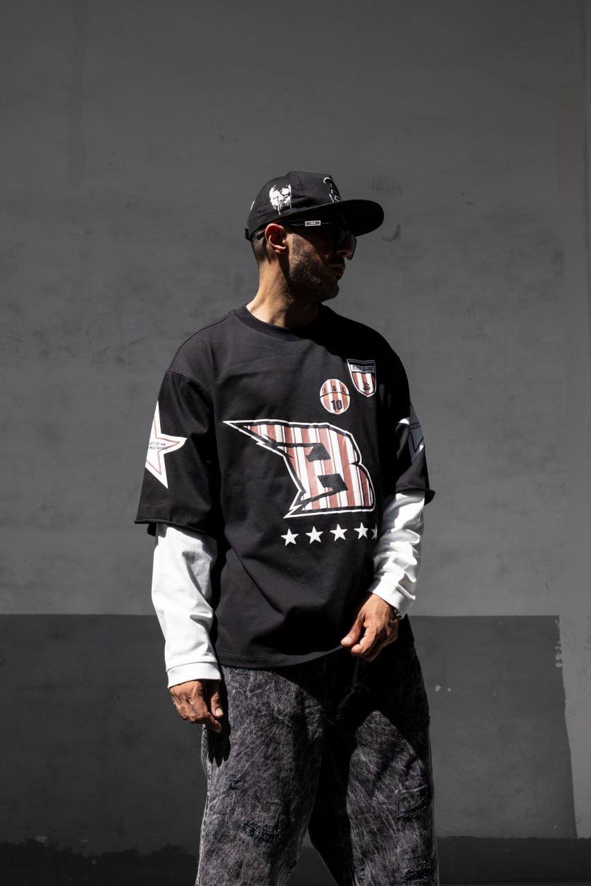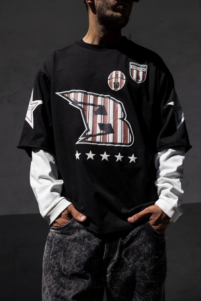 Чоловічий Чорно-Білий Світшот Оверсайз у Прінт з Подвійними Рукавами