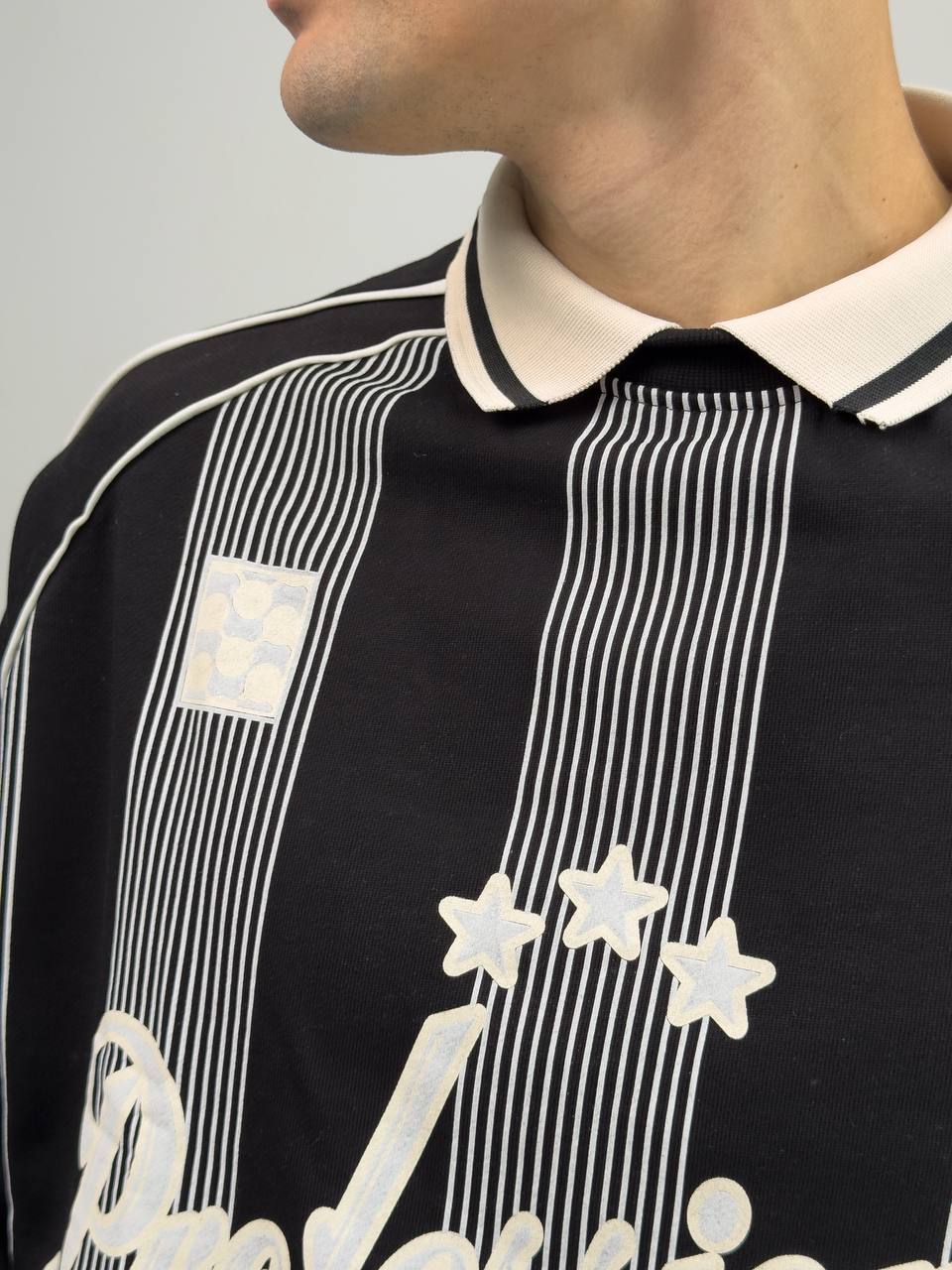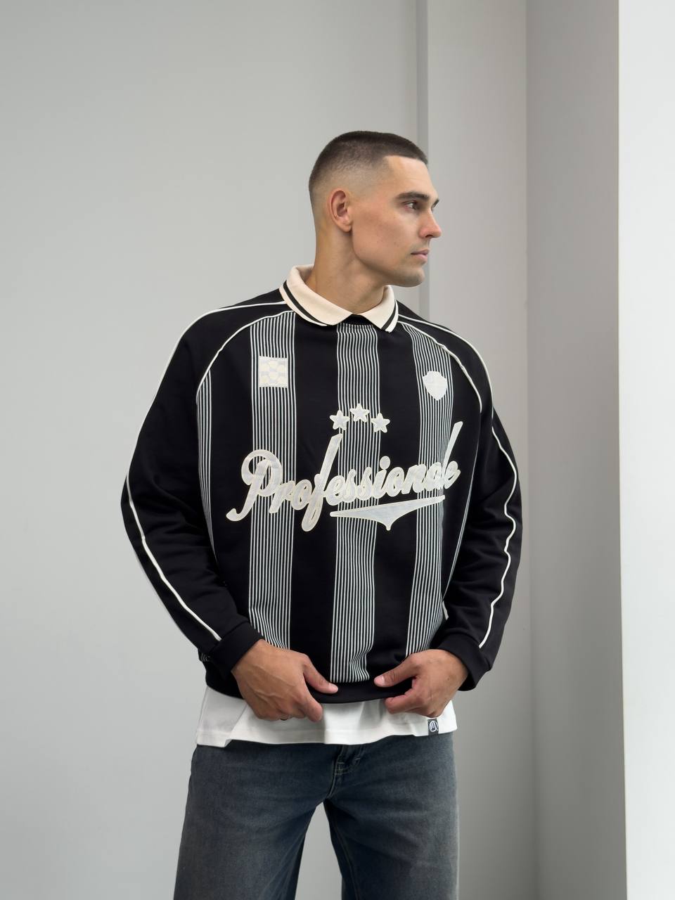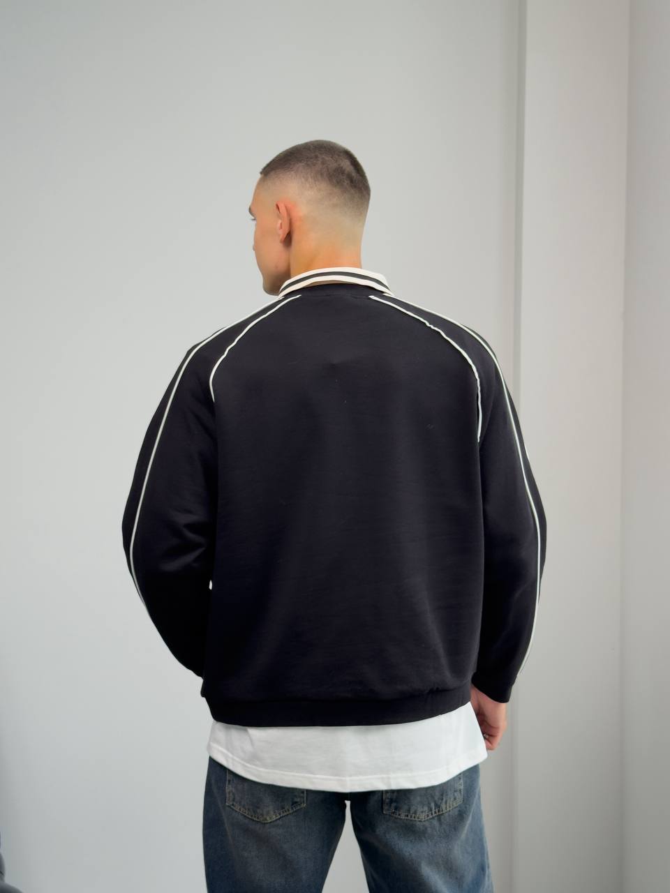 Чоловічий Чорний Світшот Реглан Поло Оверсайз з Принтом та Кантом