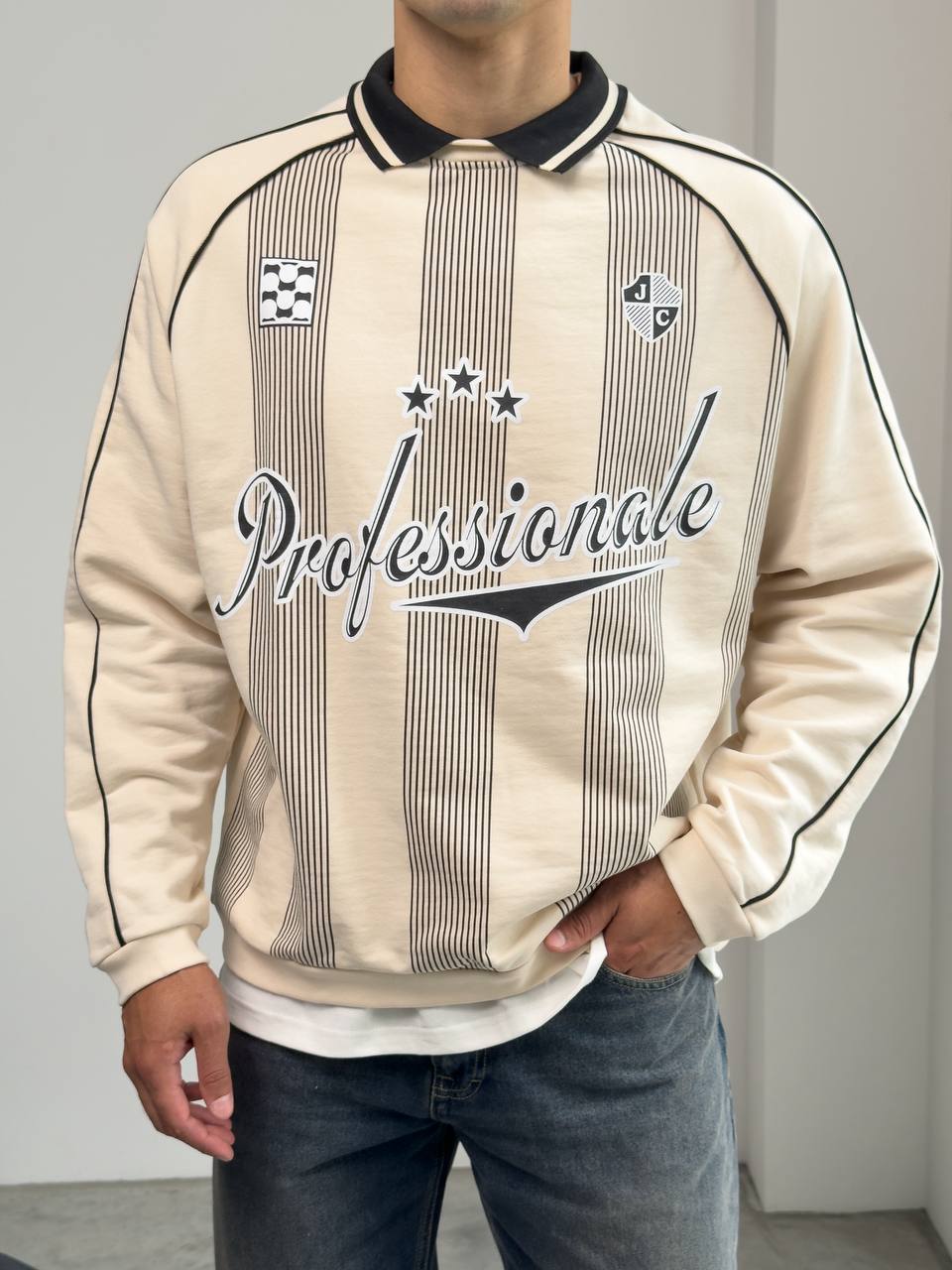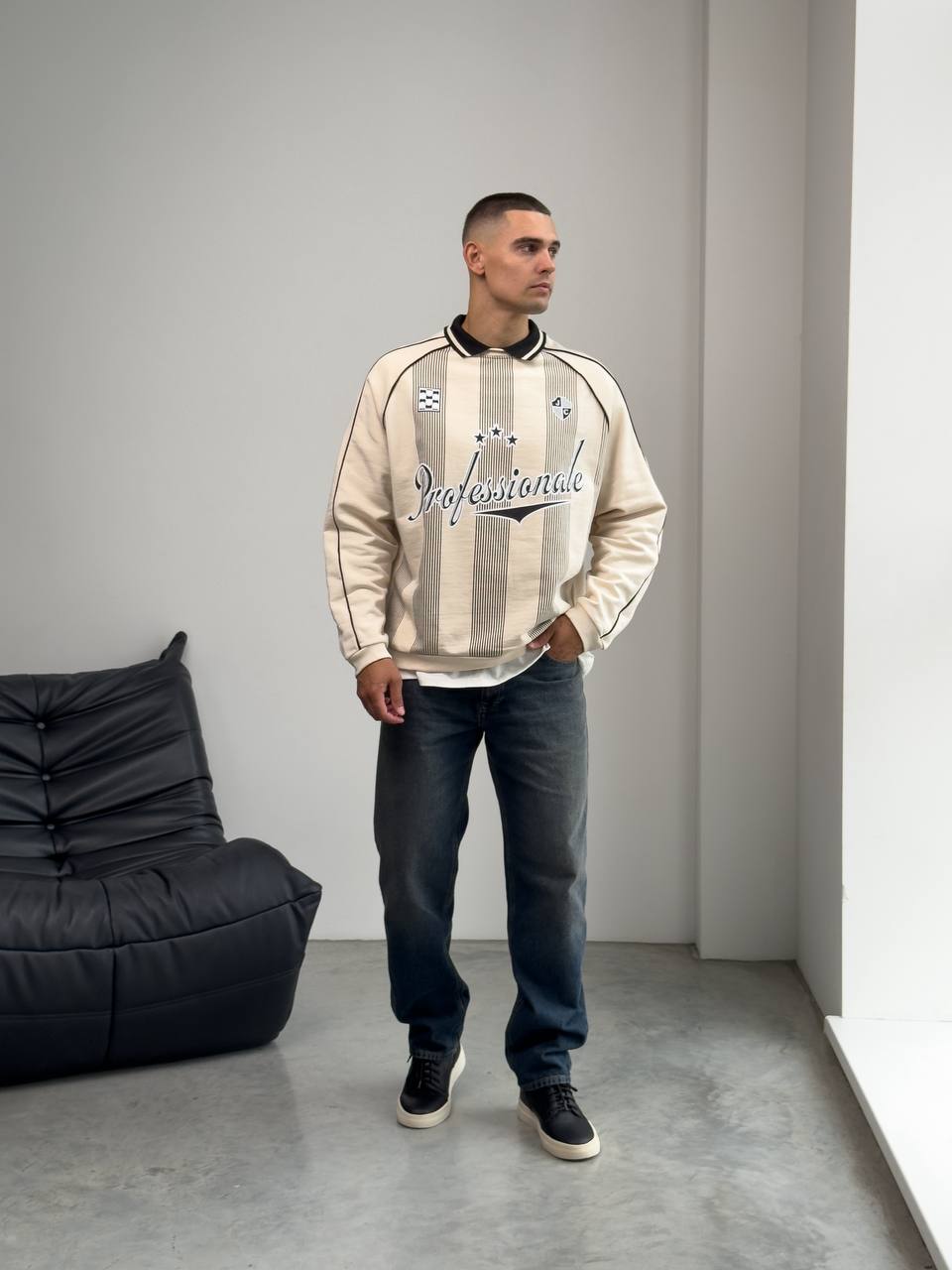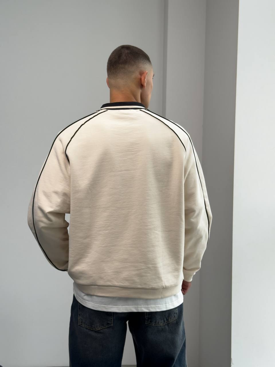 Чоловічий Кремовий Світшот Реглан Поло Оверсайз з Принтом та Кантом