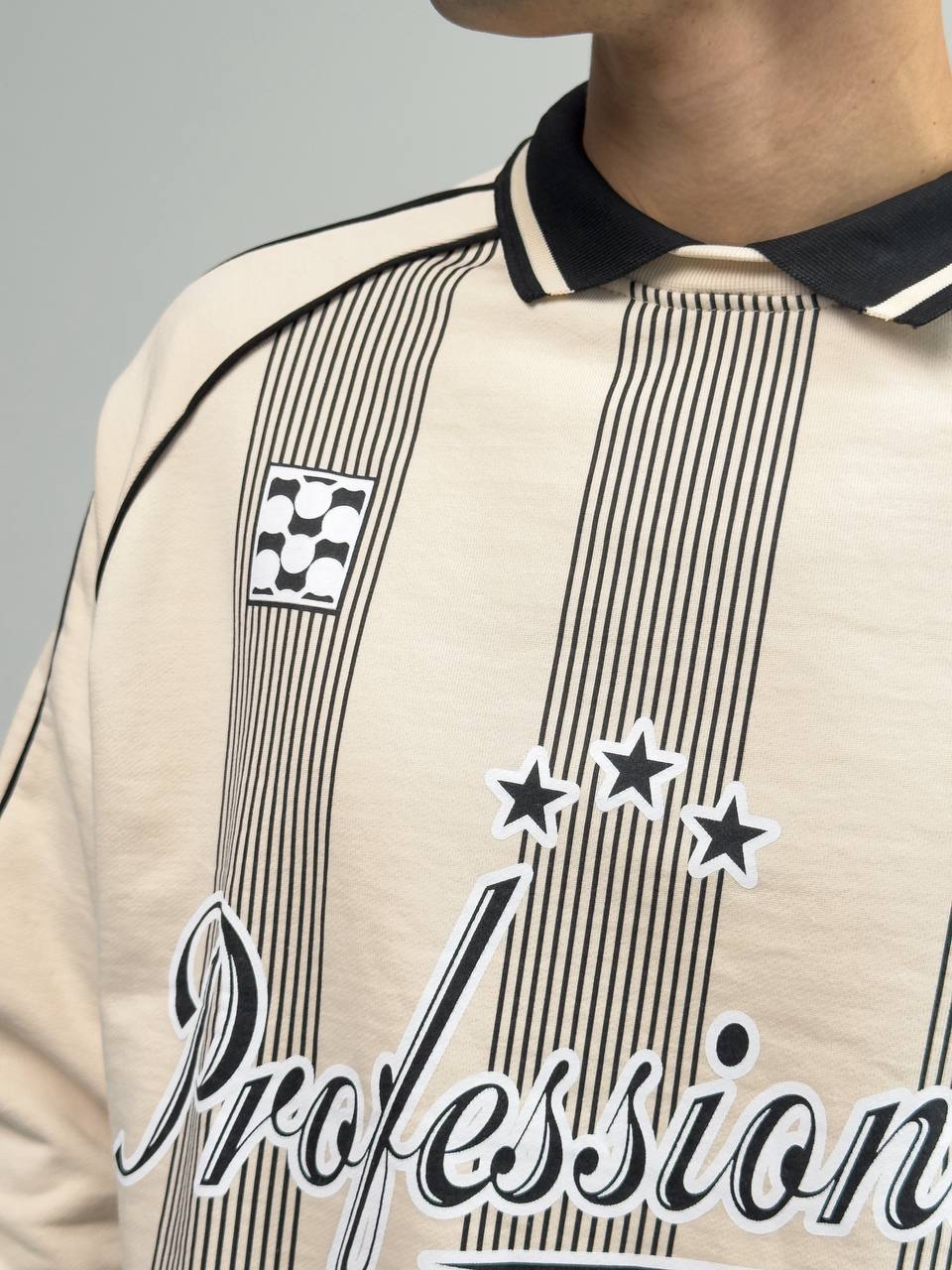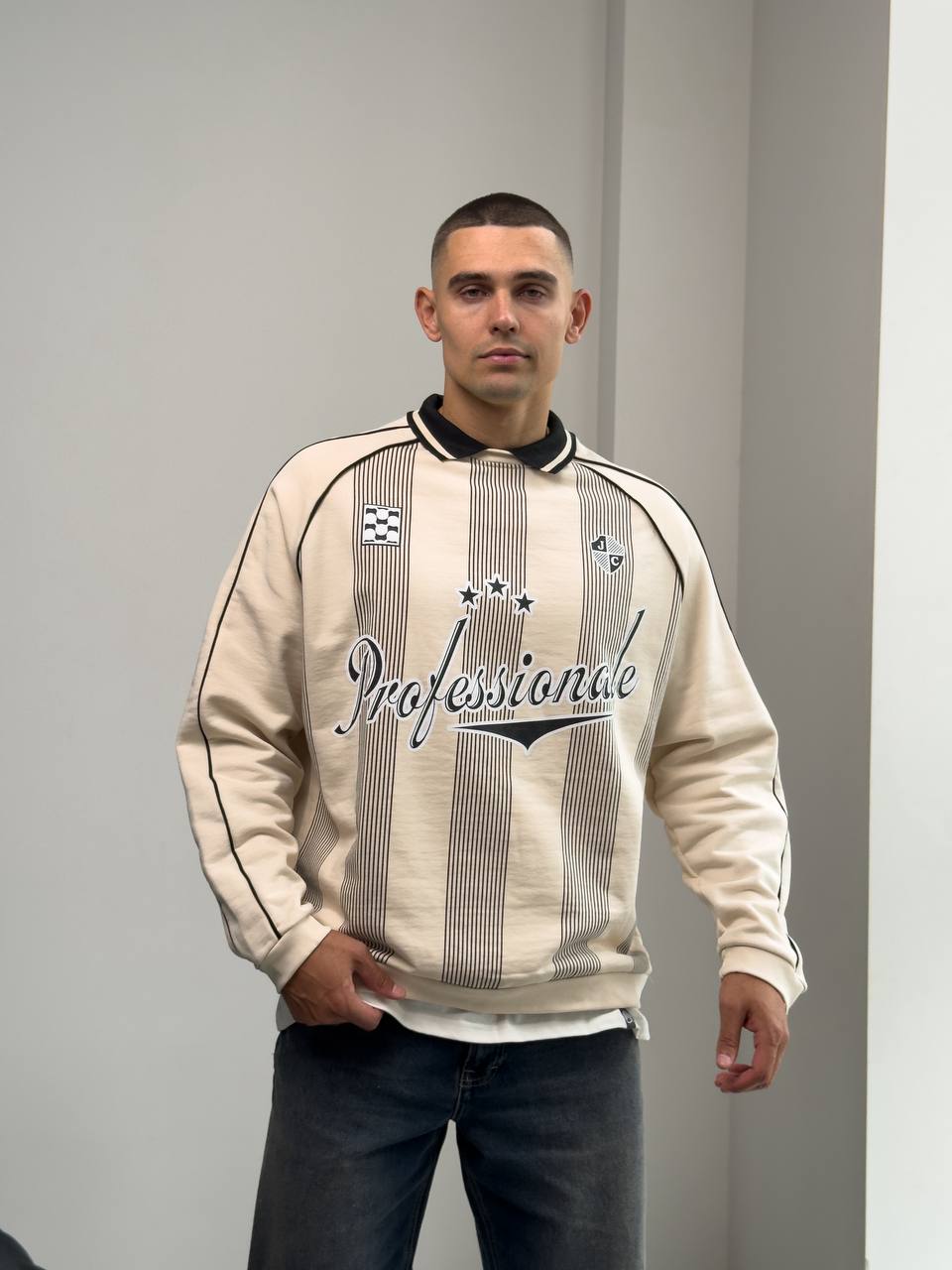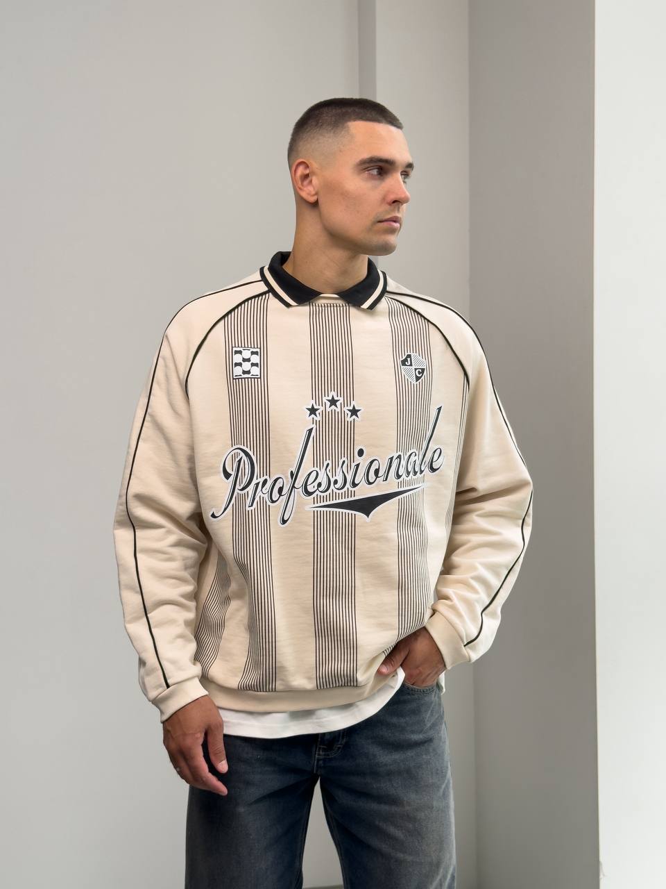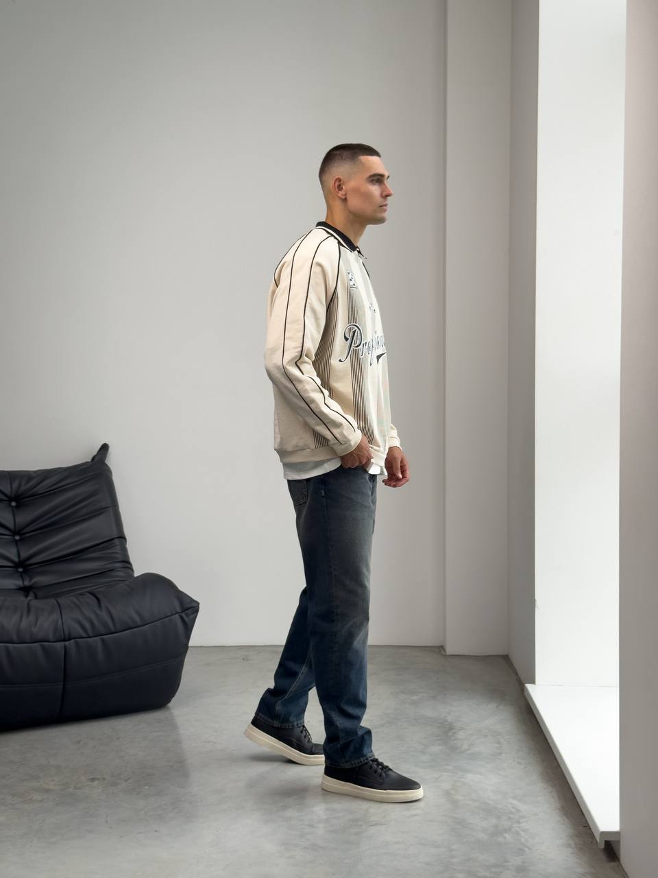 Чоловічий Кремовий Світшот Реглан Поло Оверсайз з Принтом та Кантом
