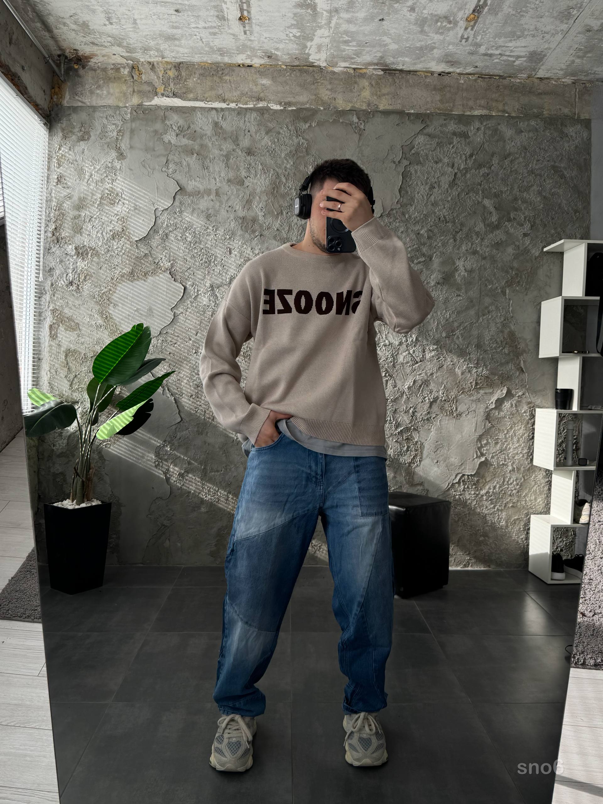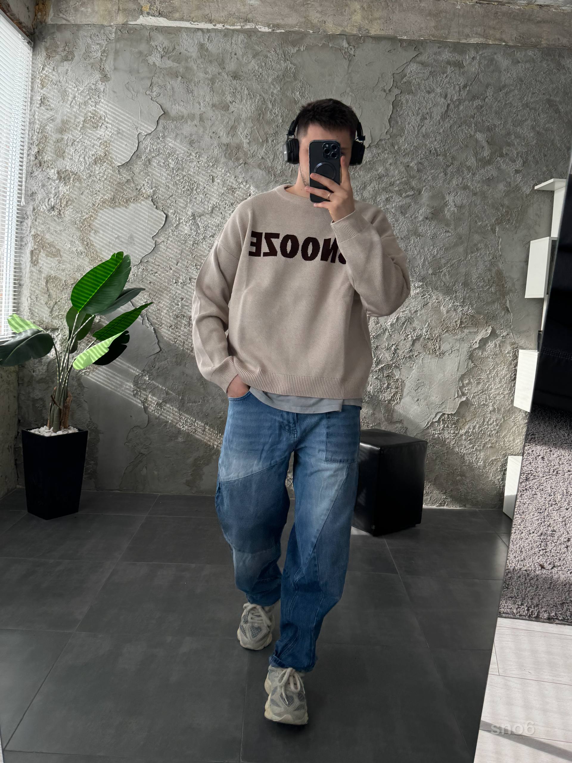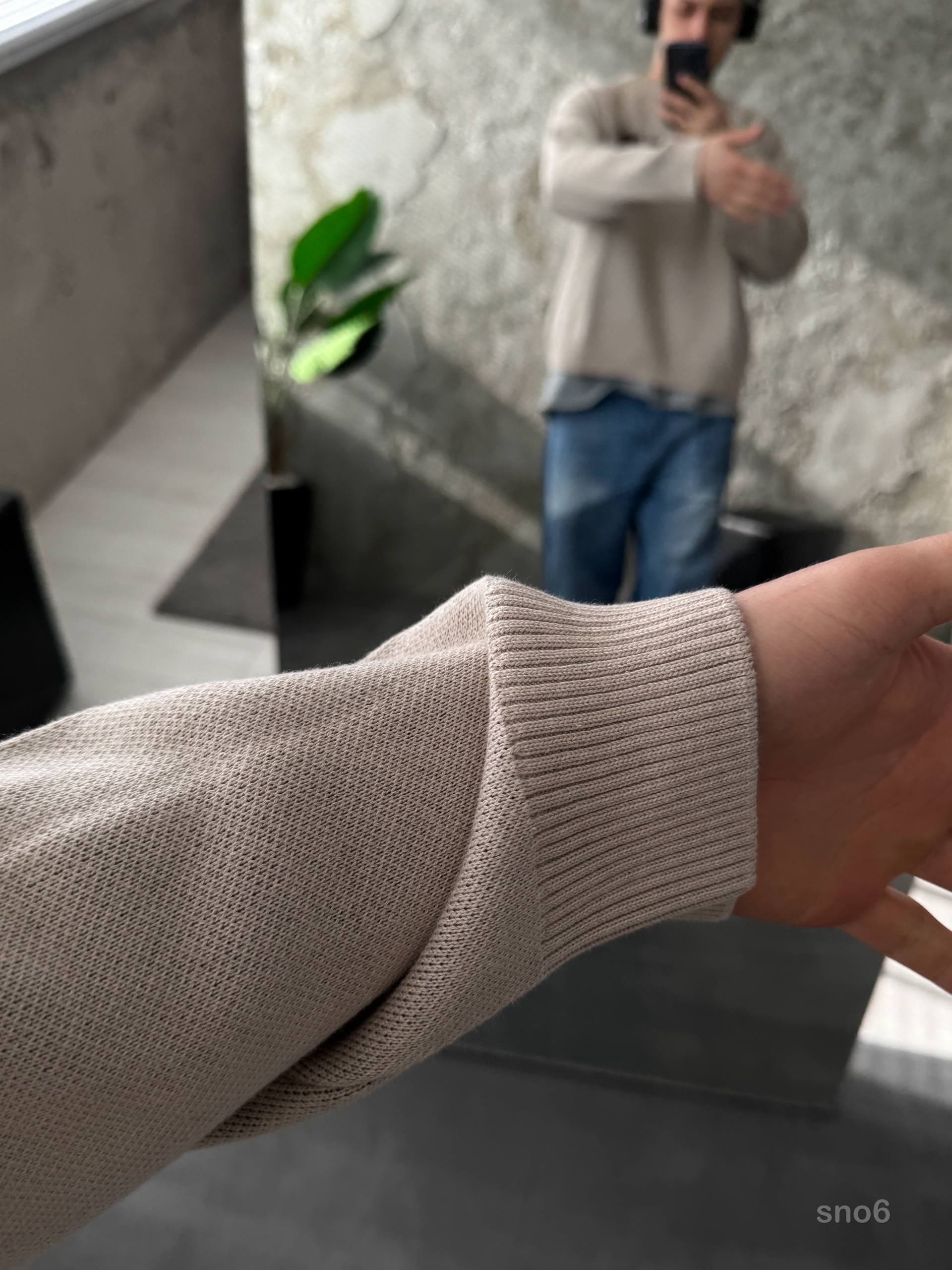 Чоловічий Трикотажний Бежевий Світшот Вільного Крою з Написом