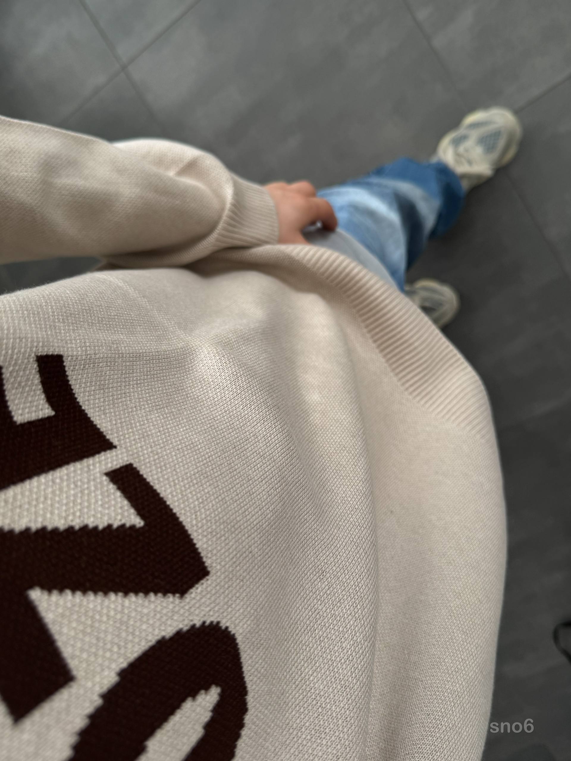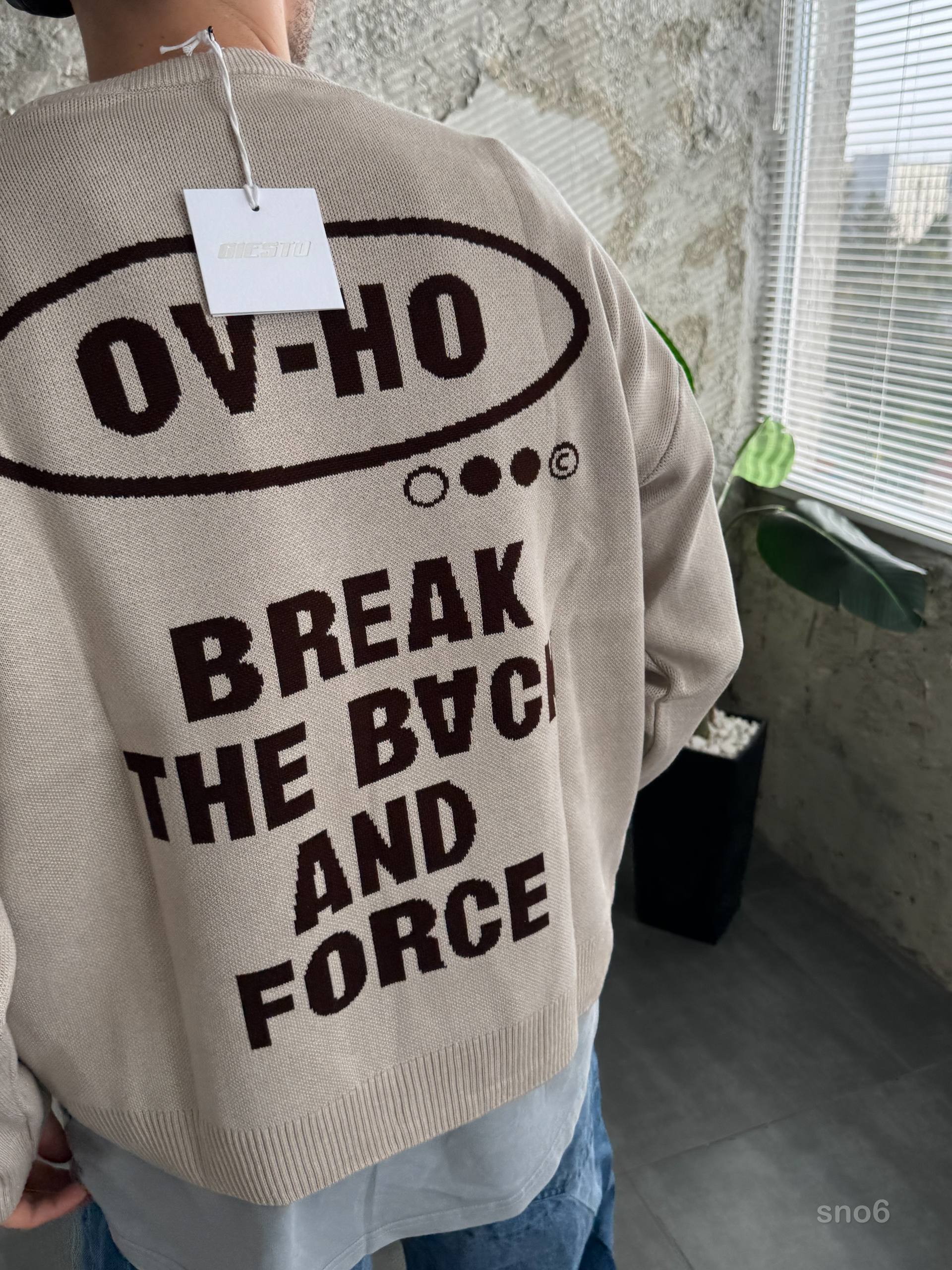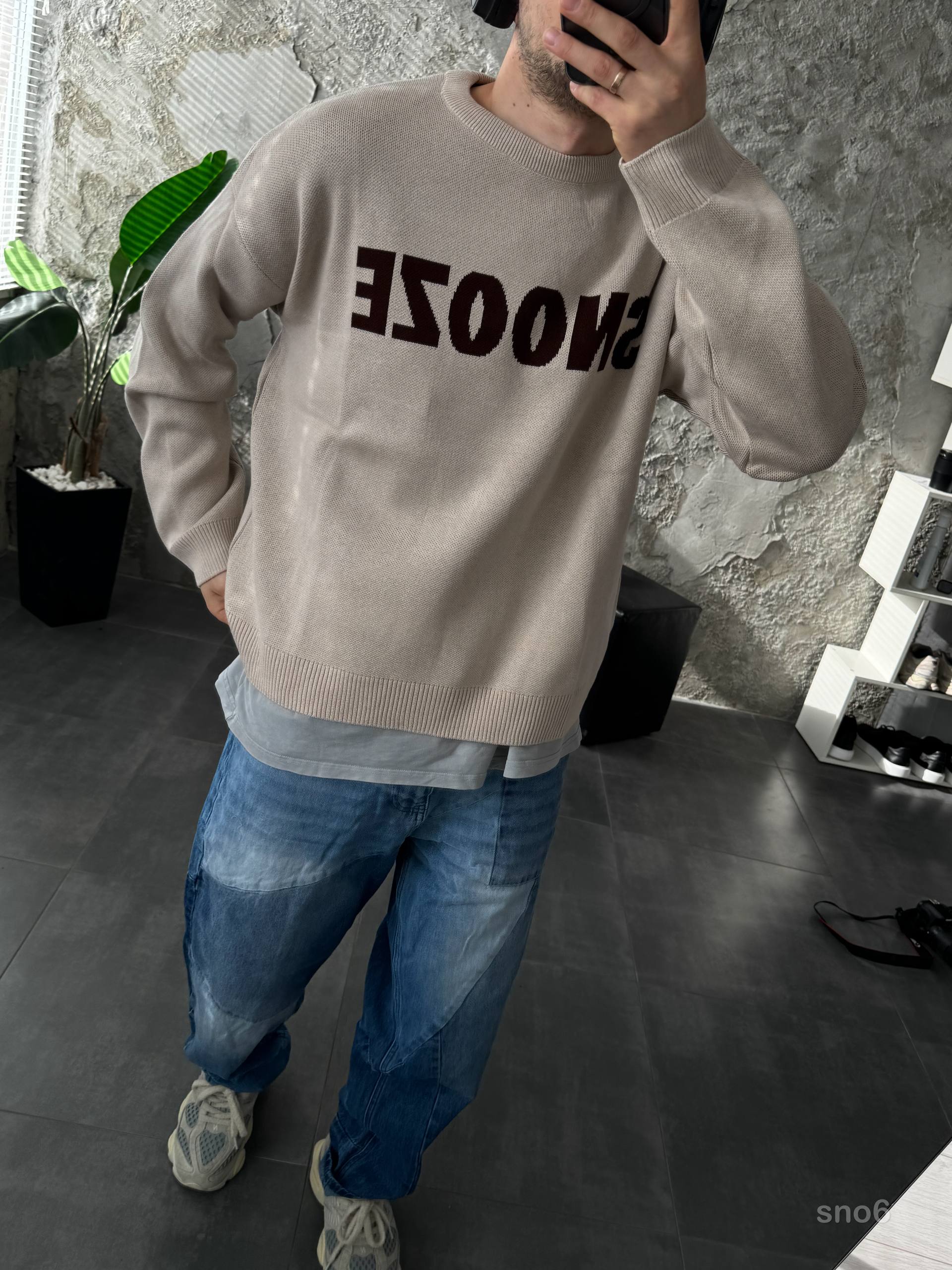 Чоловічий Трикотажний Бежевий Світшот Вільного Крою з Написом