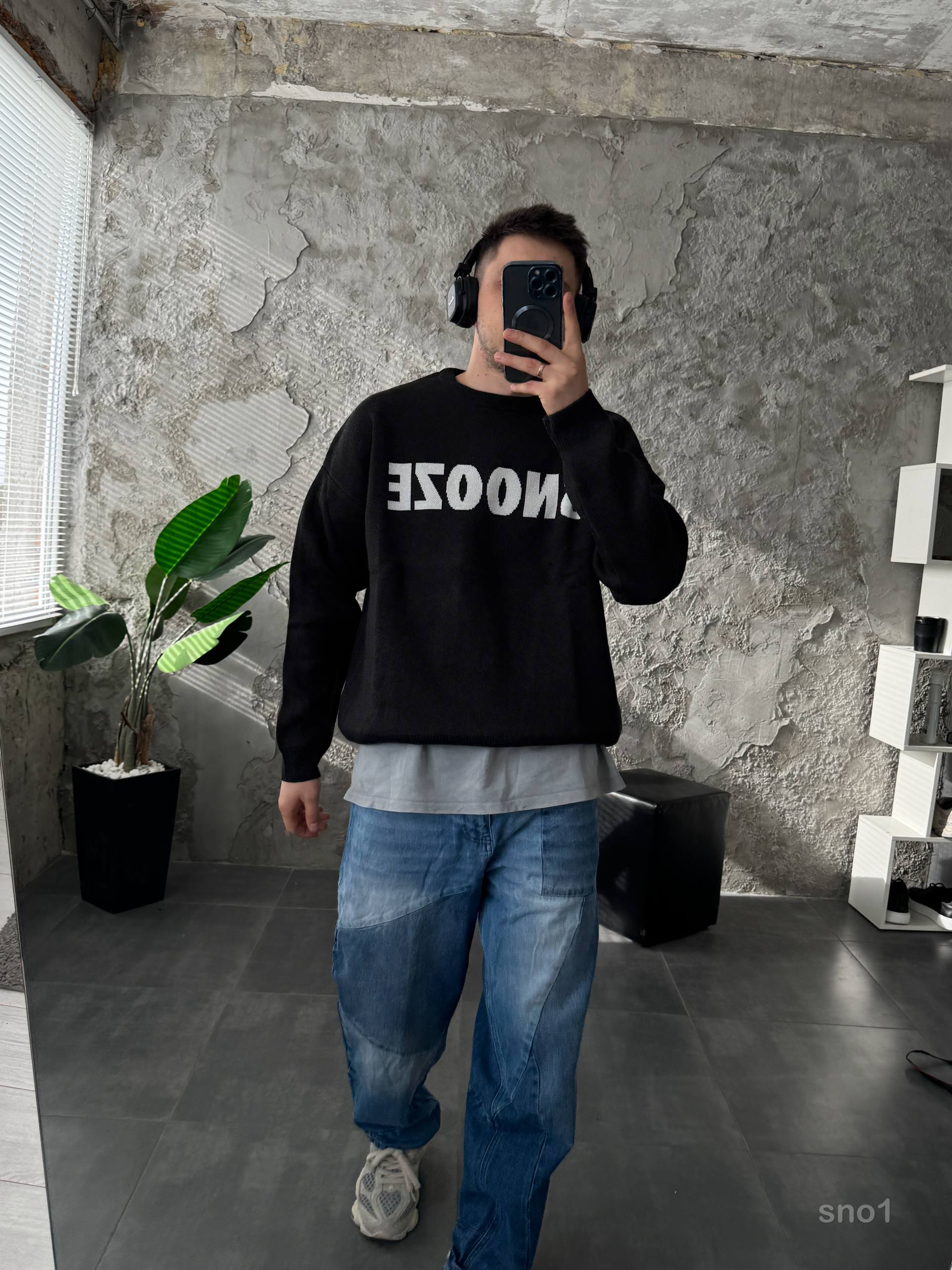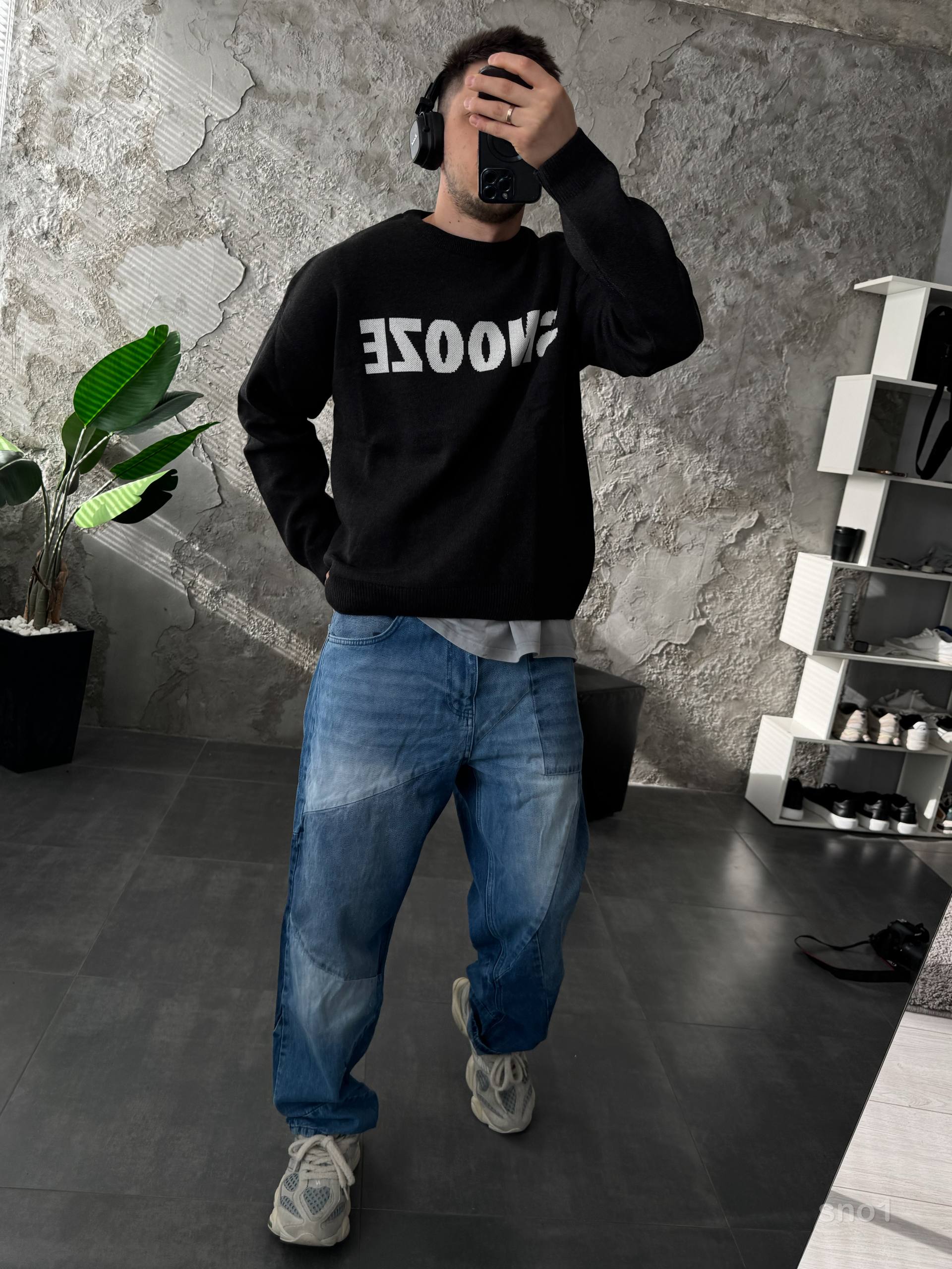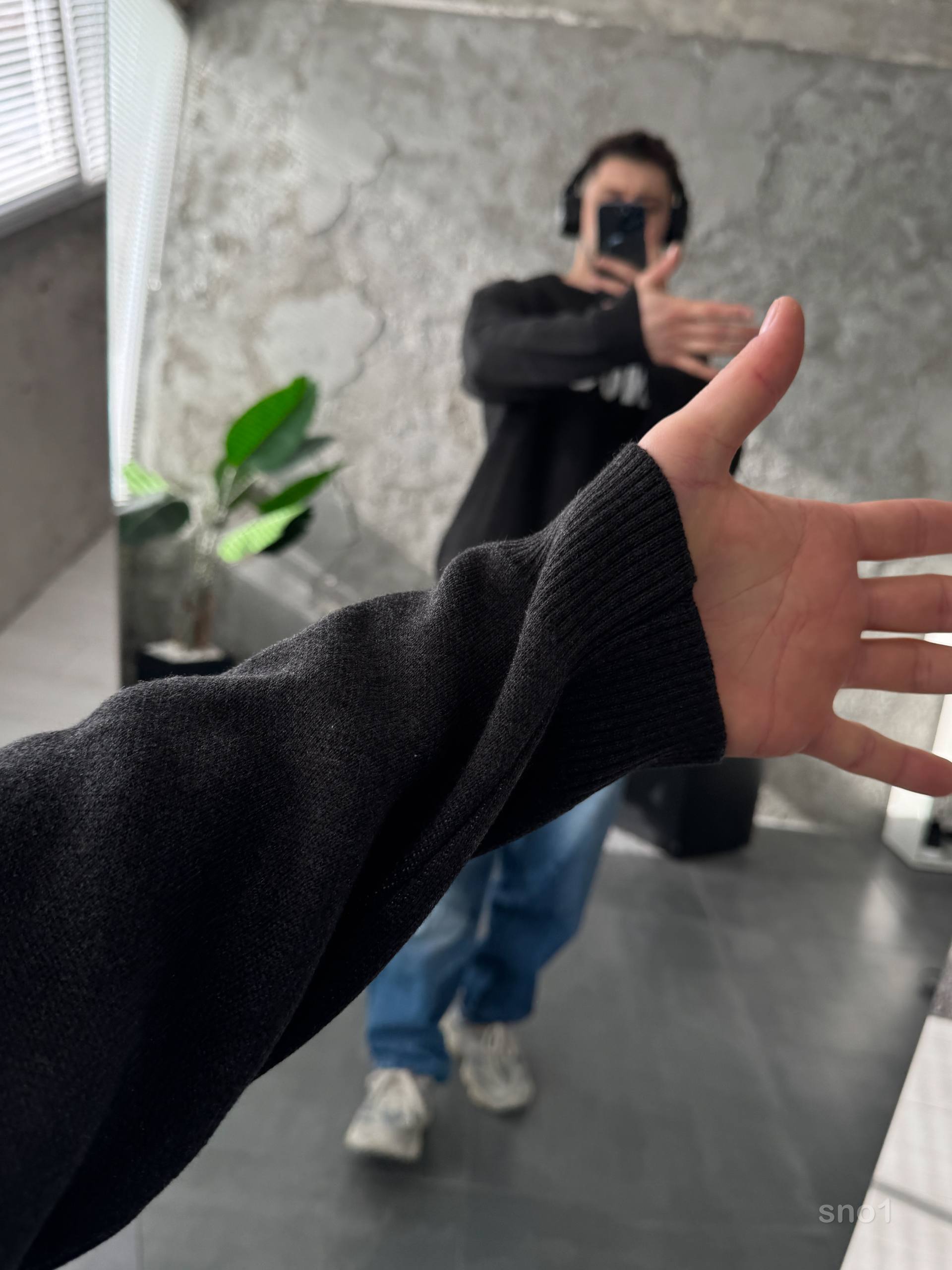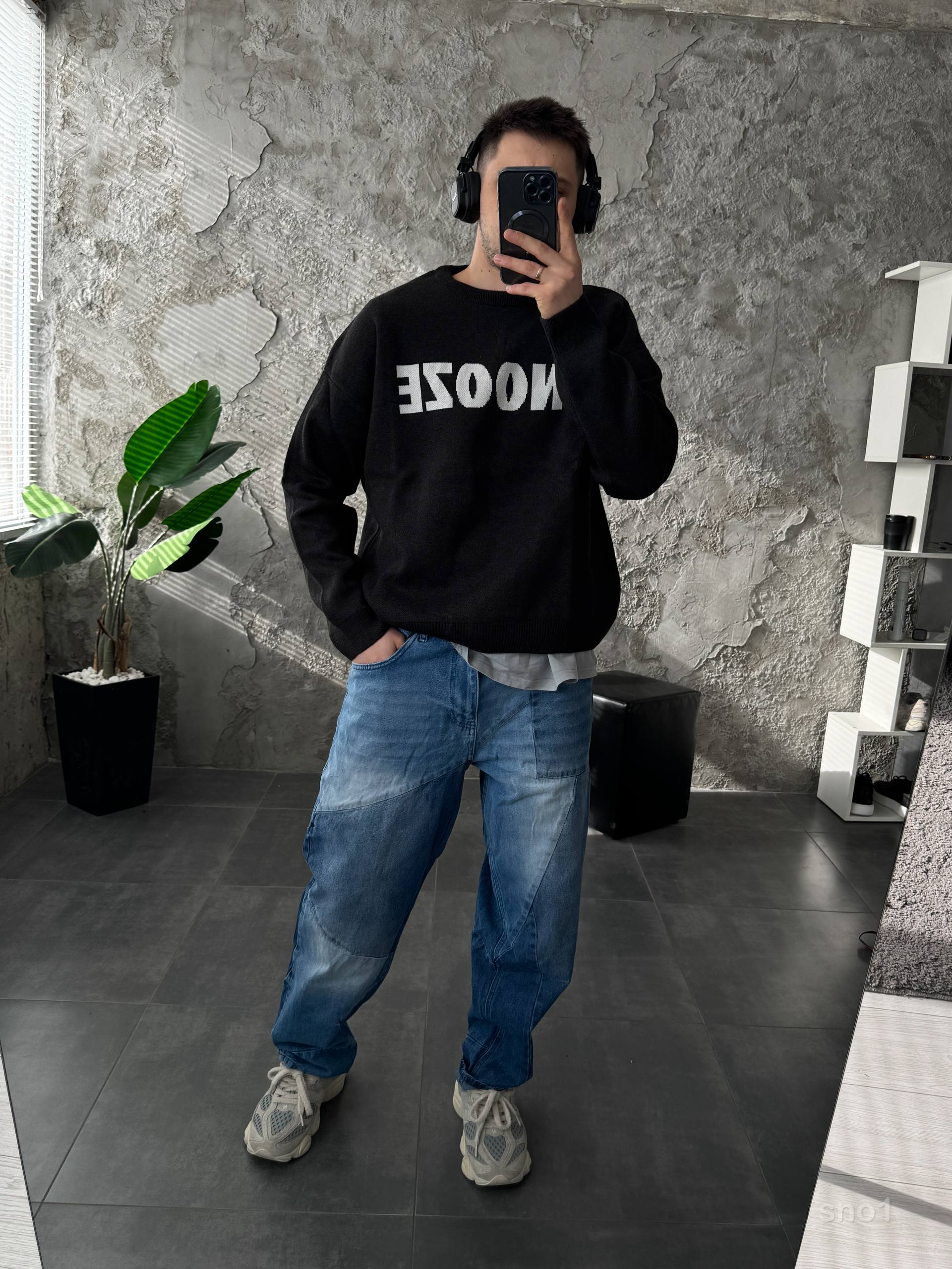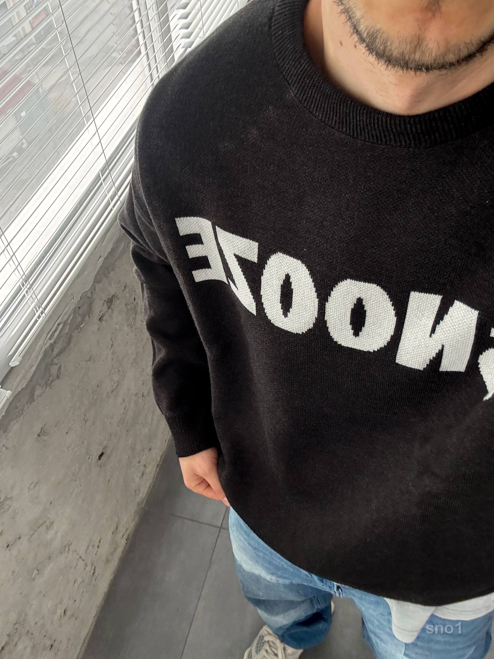 Чоловічий Трикотажний Чорний Світшот Вільного Крою з Написом