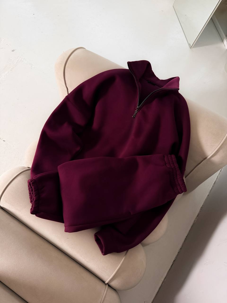 Чоловіча Базова Бордова Кофта із Замком під Горло – Тепла з Начосом