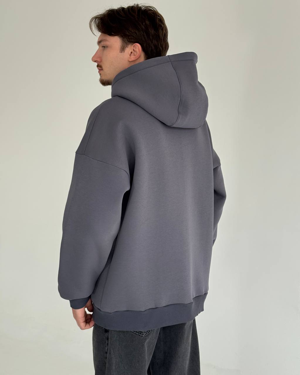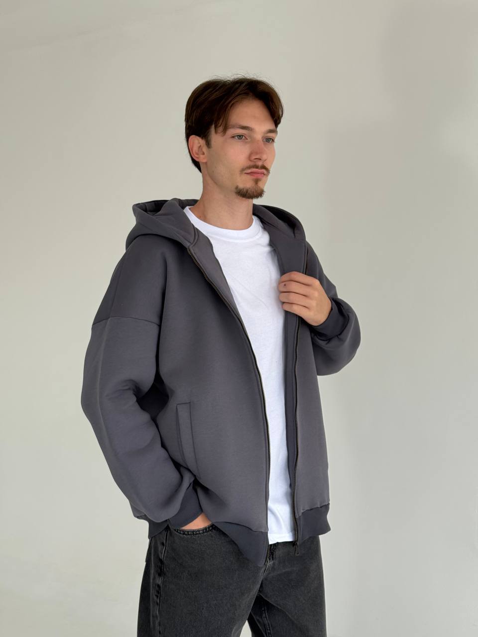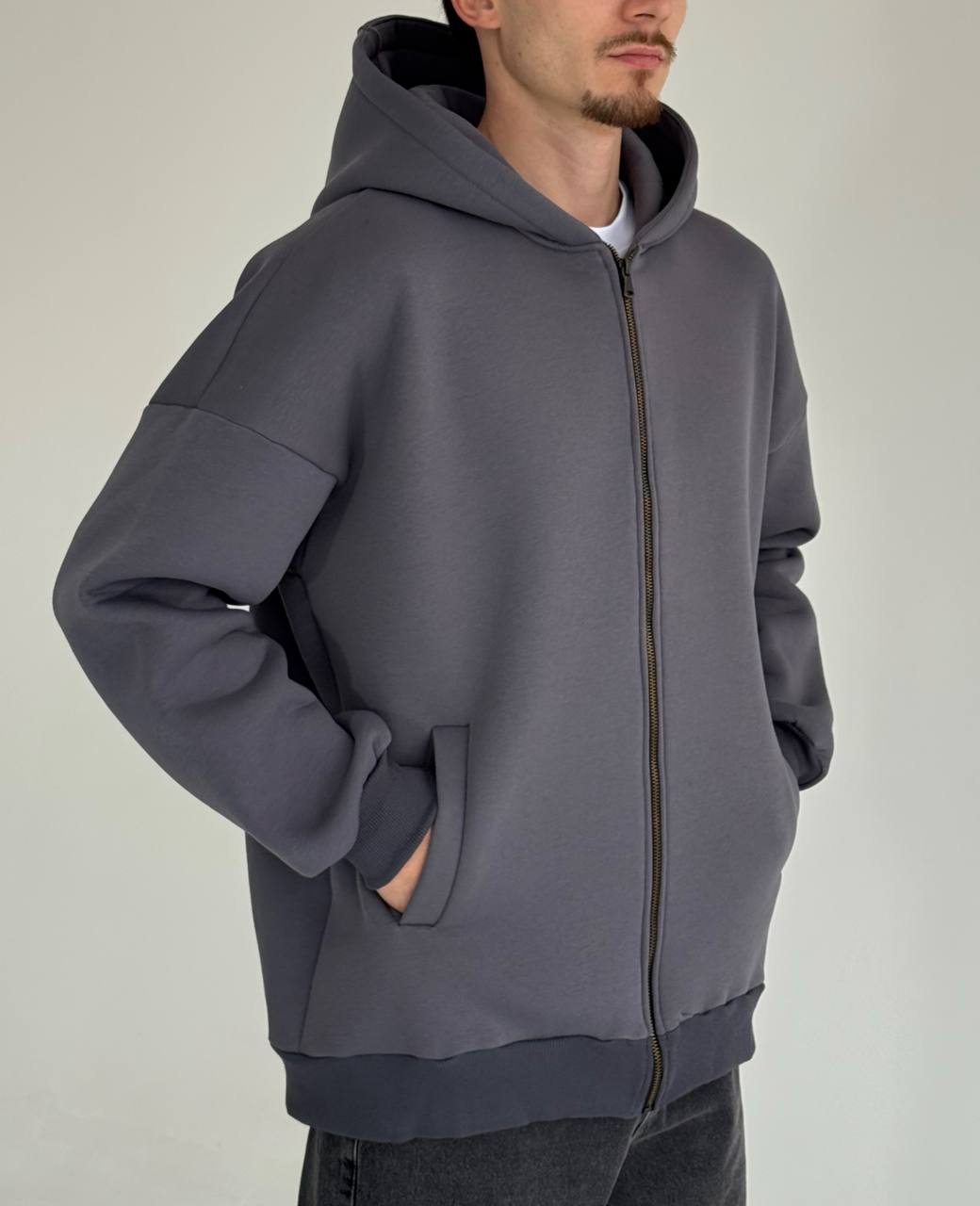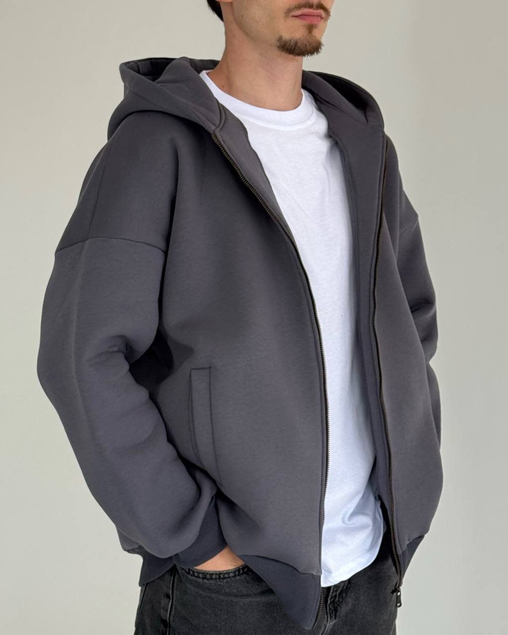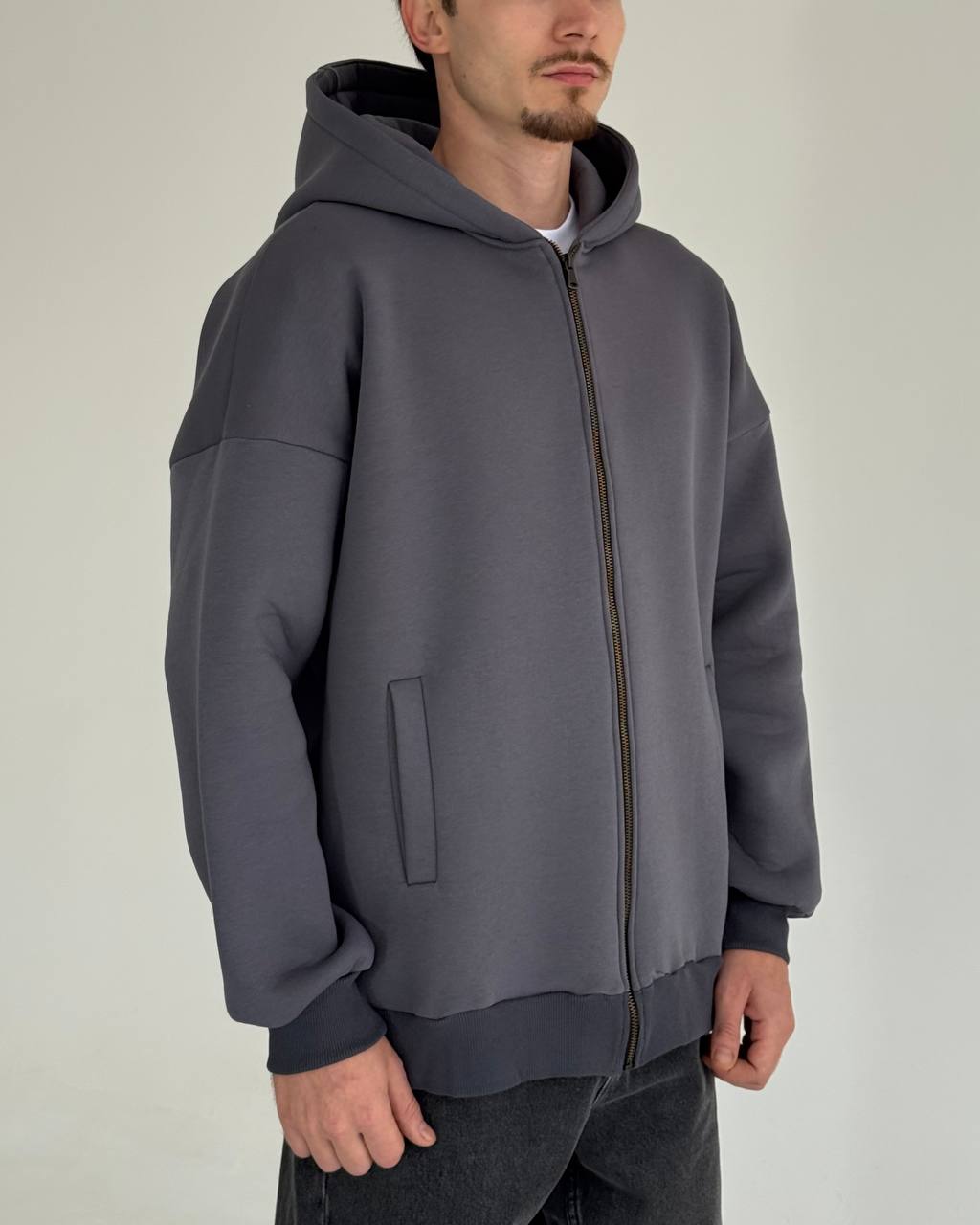 Чоловіча Утеплена Графітова Зіп Кофта Оверсайз – Тринитка на Флісі