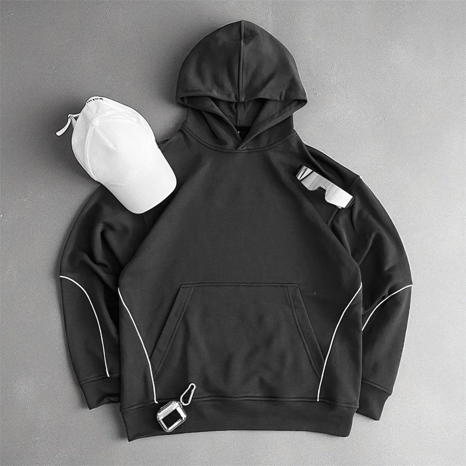 Чоловіче Бавовняне Графітове Худі Оверсайз – Толстовка з Кантом