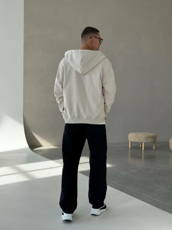 Чоловіче Базове Бежеве Зіп Худі Оверсайз – Бавовняна Кофта на Блискавці з Капюшоном