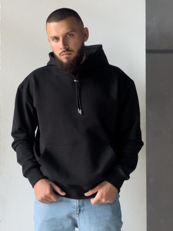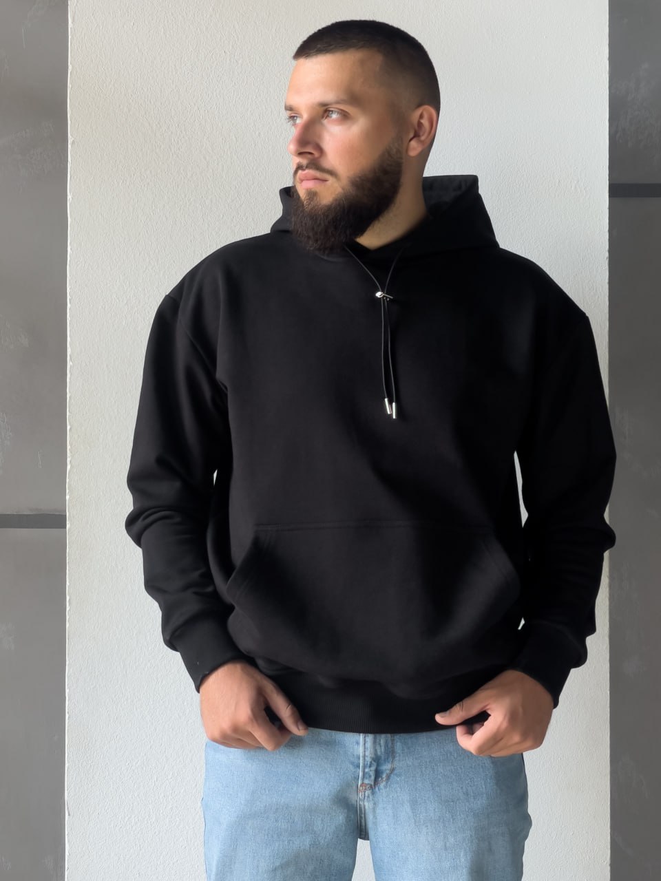 Чоловіче Базове Чорне Худі Оверсайз – Толстовка з Капюшоном на Кулиску