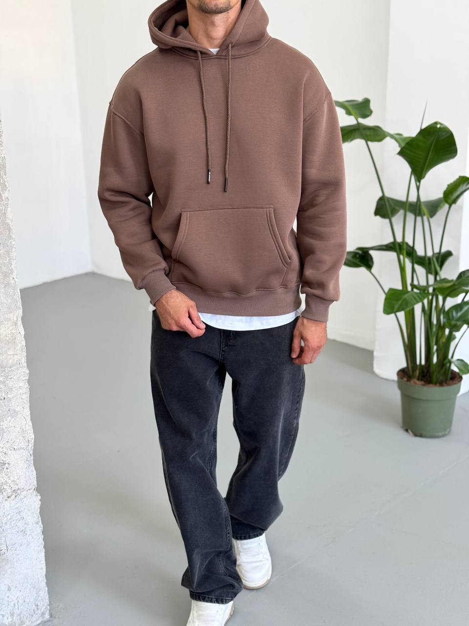 Чоловіче Базове Тепле Коричневе Худі Оверсайз на Флісі