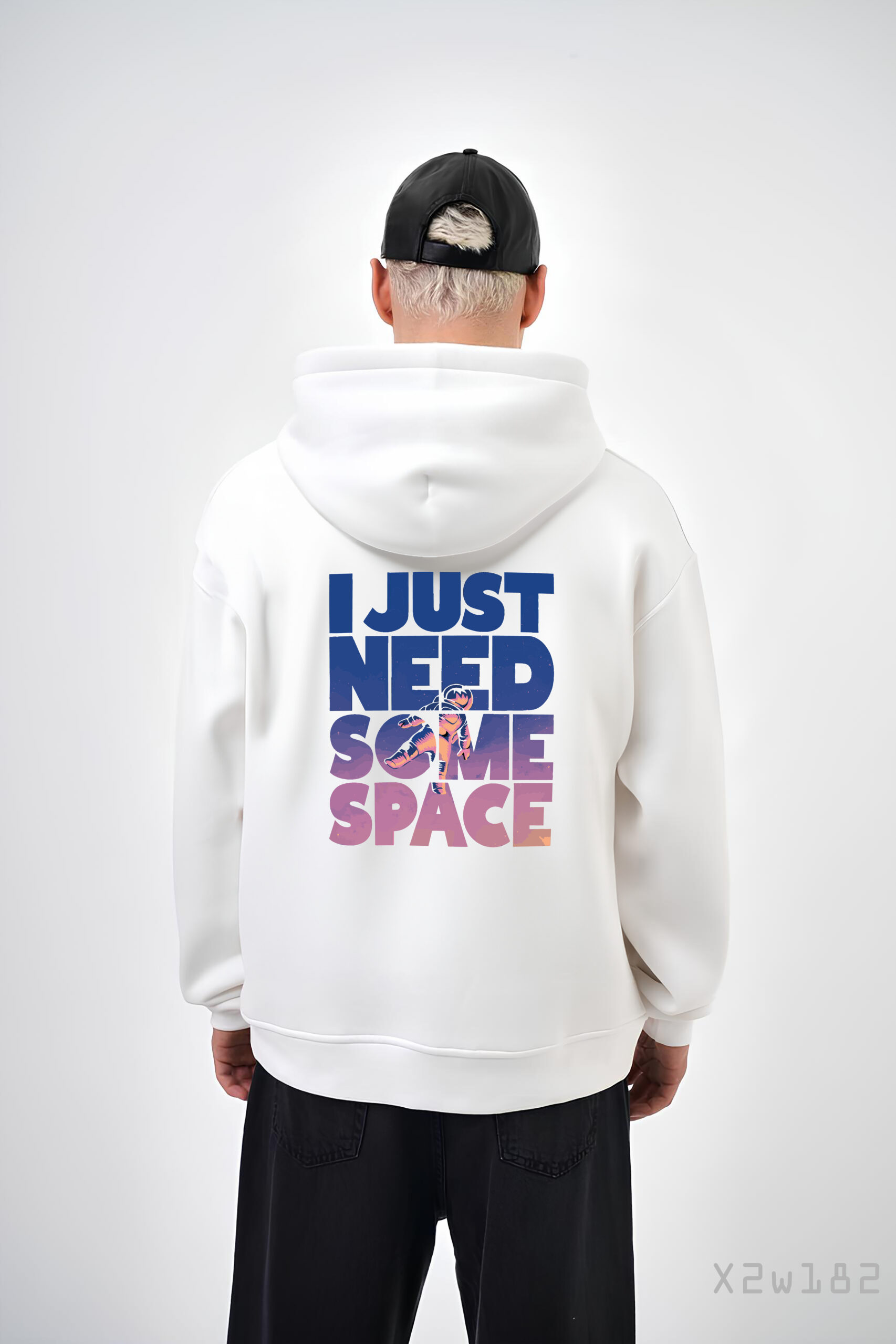 Чоловіче Біле Худі на Флісі – Вільного Крою з Принтом Написом на Спині