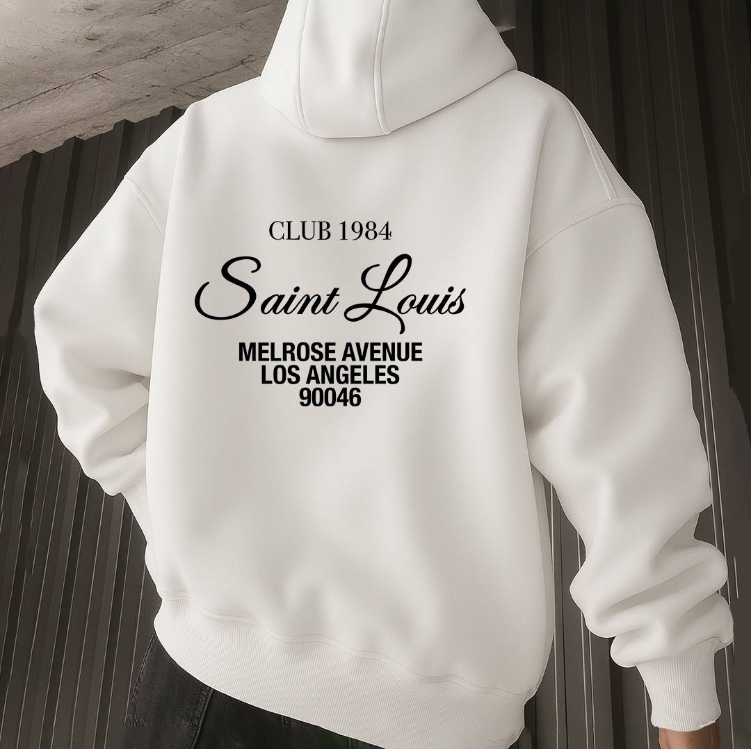 Чоловіче Біле Худі “Saint Louis” Оверсайз з Принтом – Утеплене з Начосом