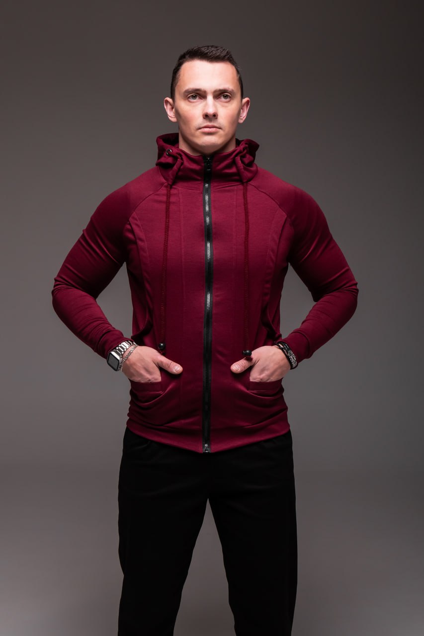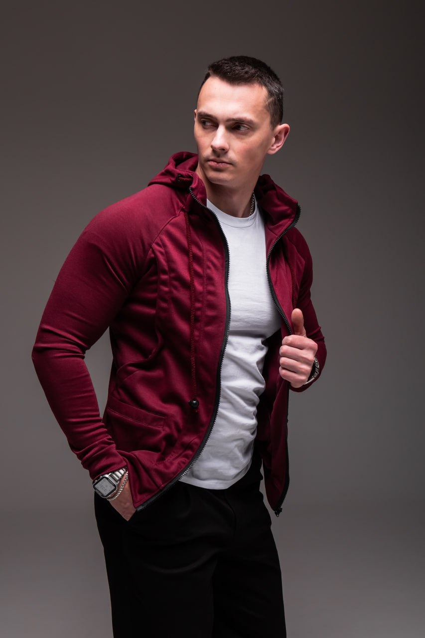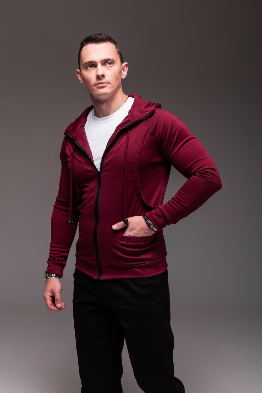 Чоловіче Червоне Зіп Худі на Блискавці – Кофта Зіпка з Капюшоном