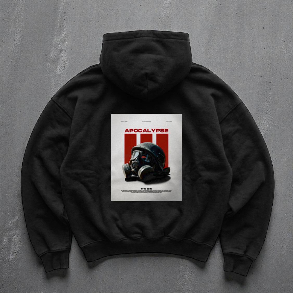 Чоловіче Чорне Худі Оверсайз – Тринитка з Принтом “Apocalypse” на Спині