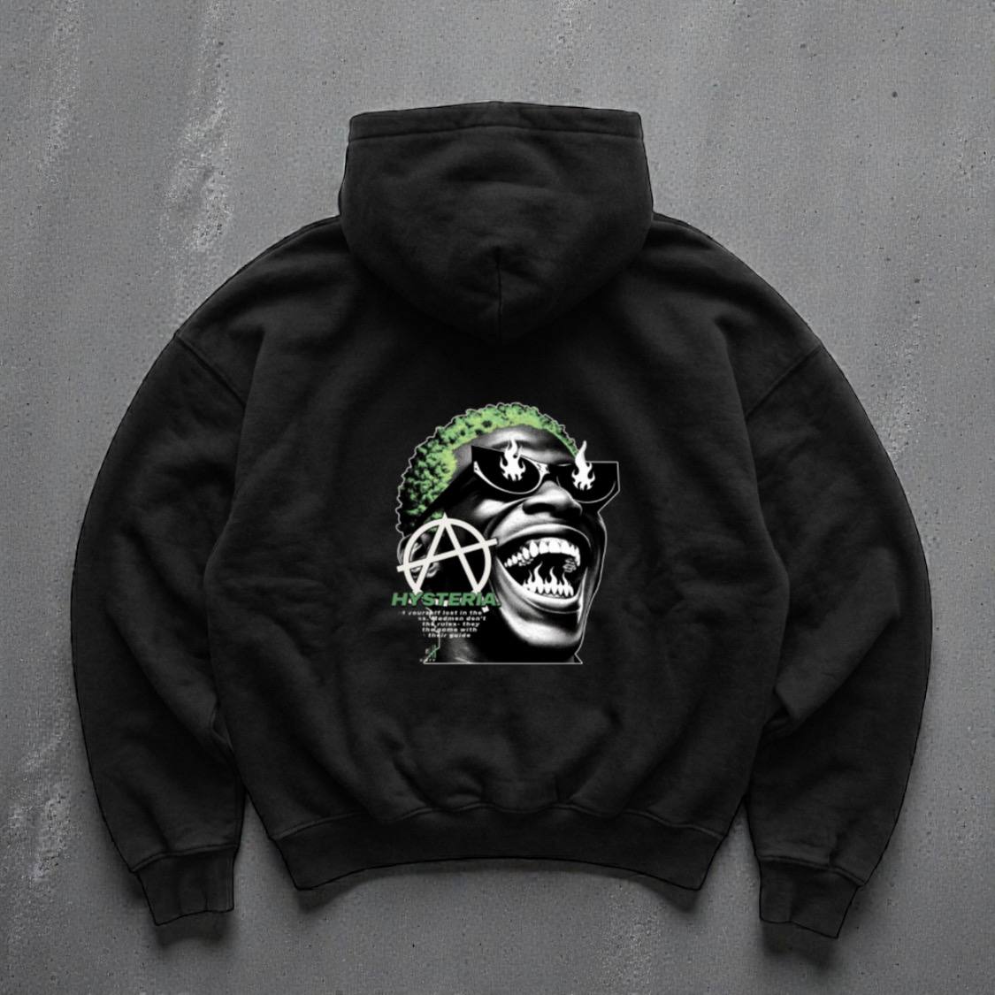 Чоловіче Чорне Худі Оверсайз – Тринитка з Принтом “Hysteria” на Спині