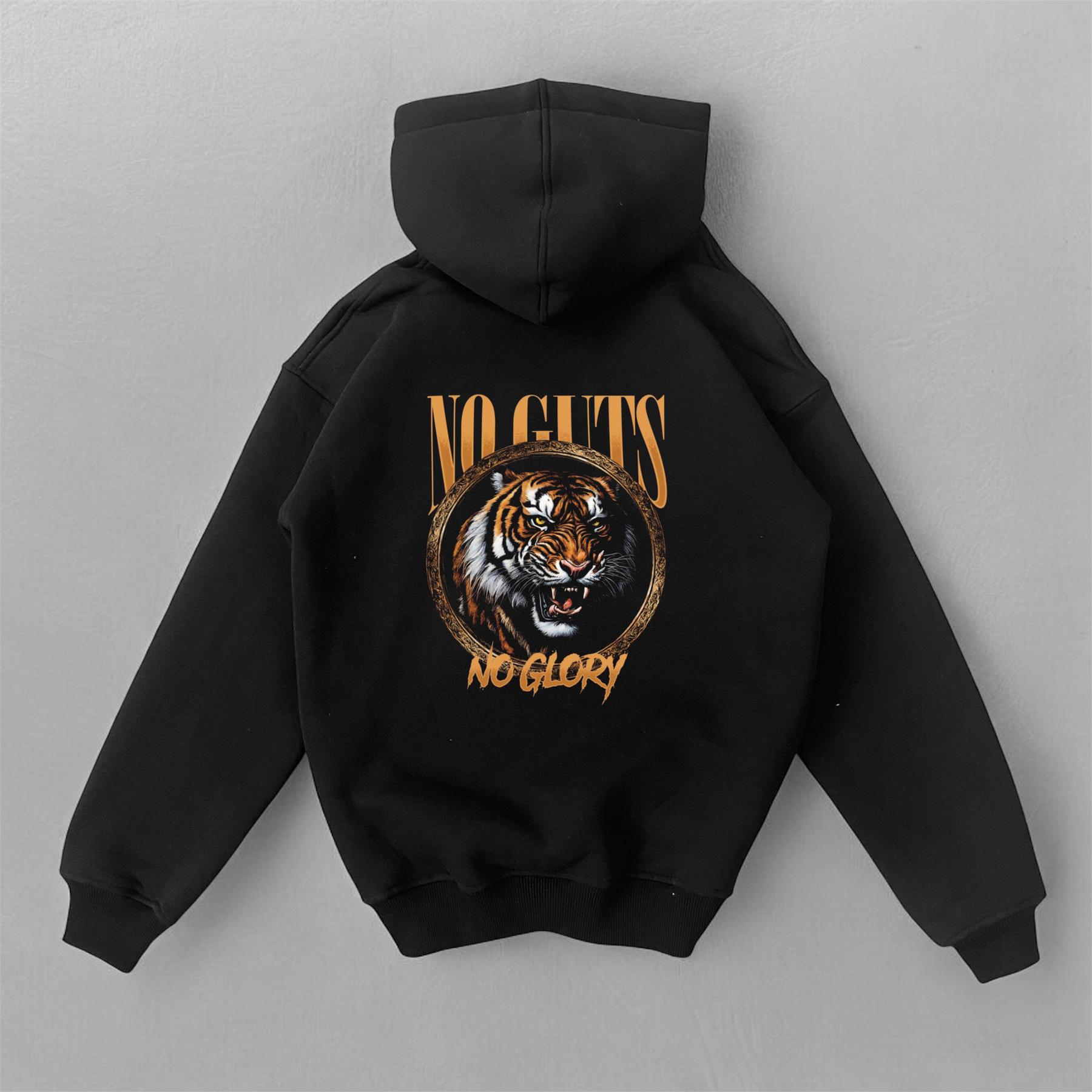 Чоловіче Чорне Худі Оверсайз – Тринитка з Принтом Тигр на Спині