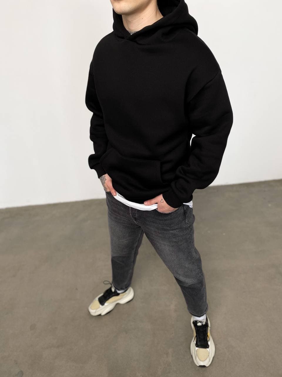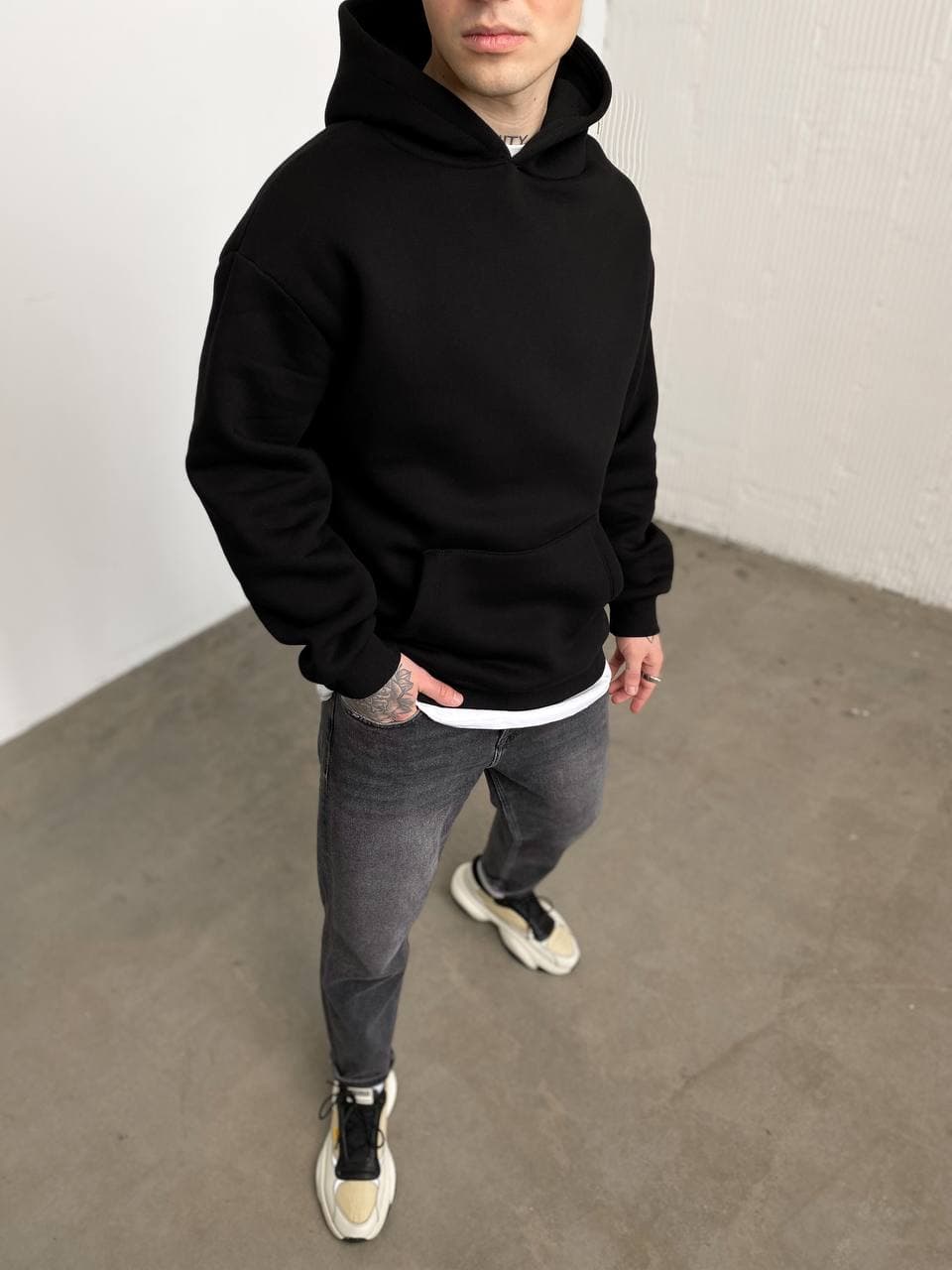 Чоловіче Чорне Худі Оверсайз Утеплене – На флісі Однотонне