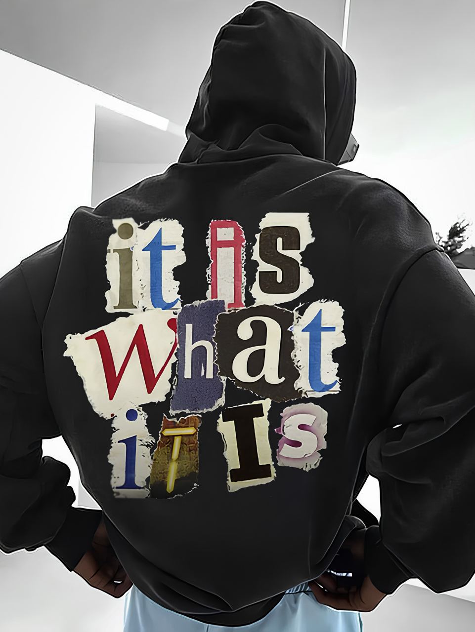 Чоловіче Чорне Худі Вільного Крою – Тринитка з Написом “It As What It Is”