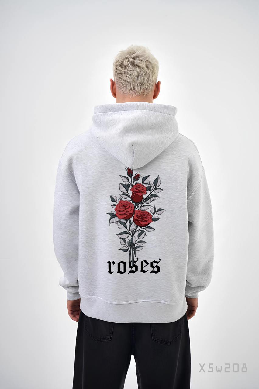 Чоловіче Сіре Худі "Roses" Вільного Крою