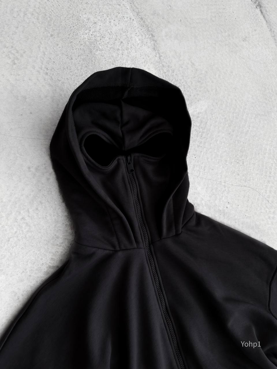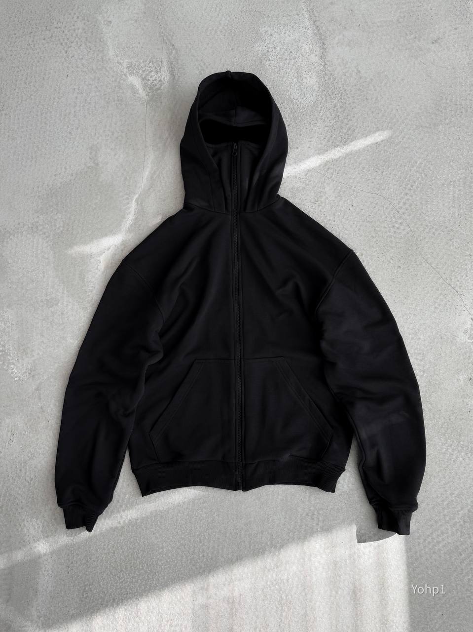 Чоловіче Чорне Зіп Худі Оверсайз на Блискавці – Кофта Зіпка з Вшитою Балаклавою